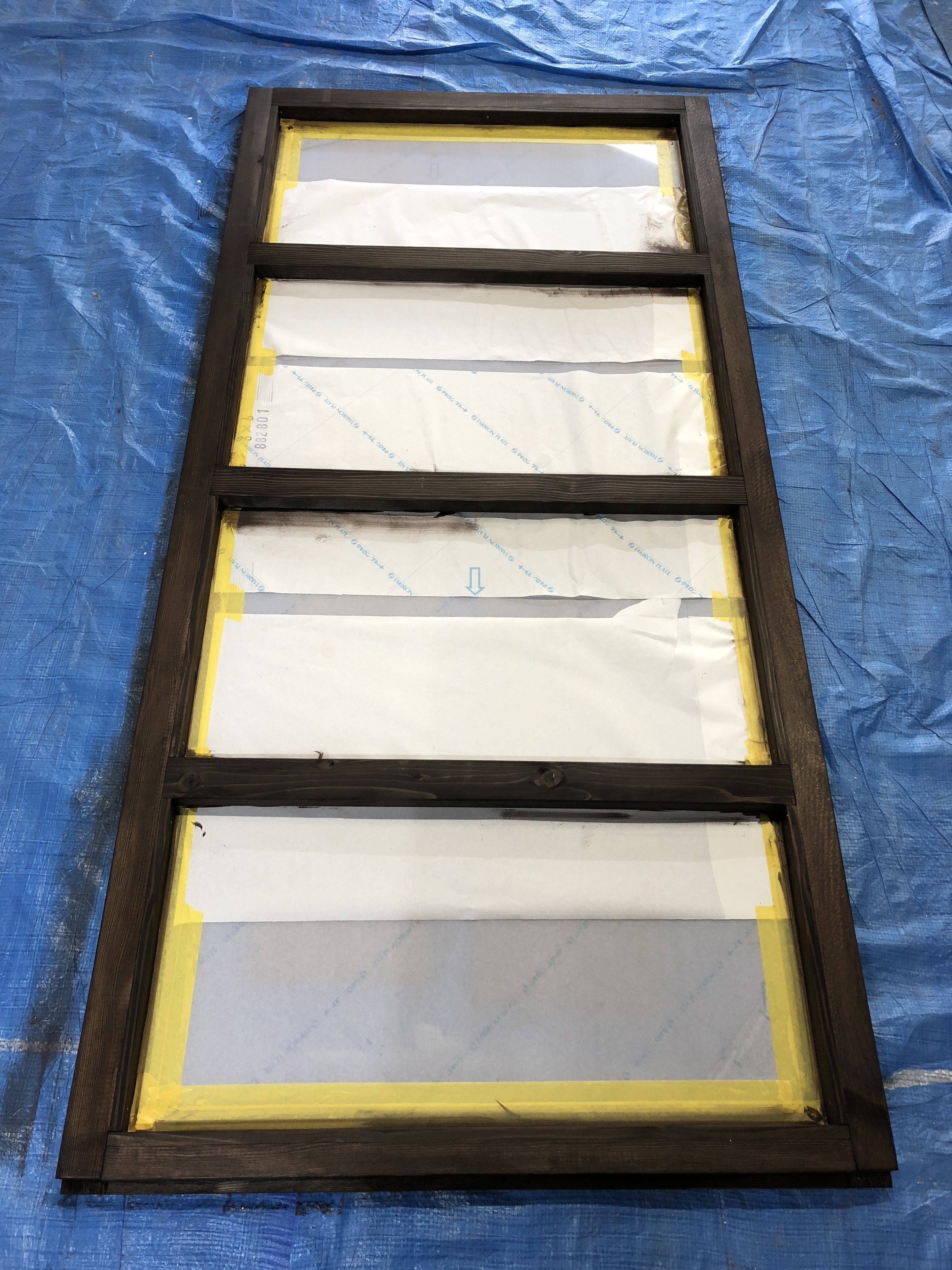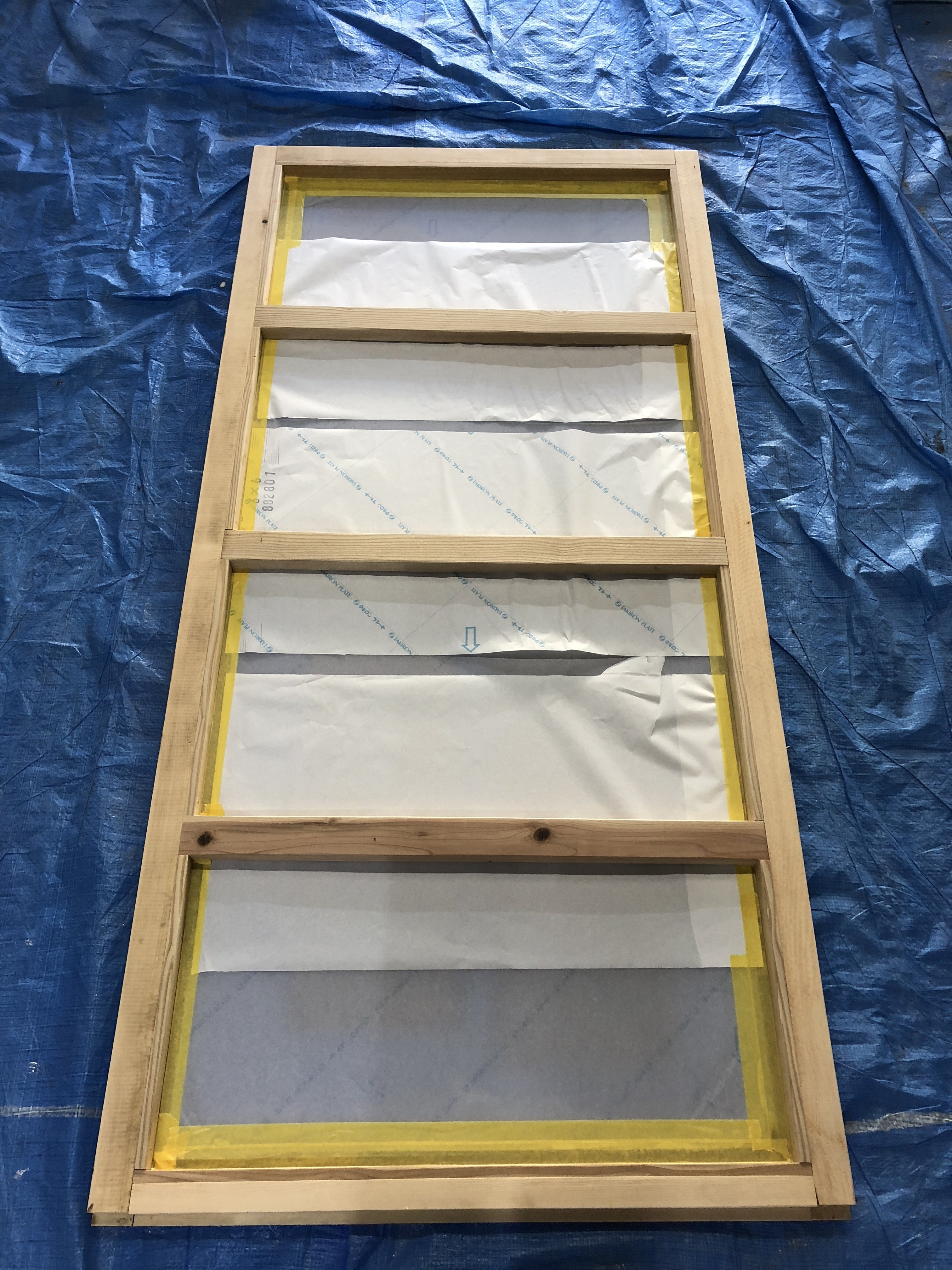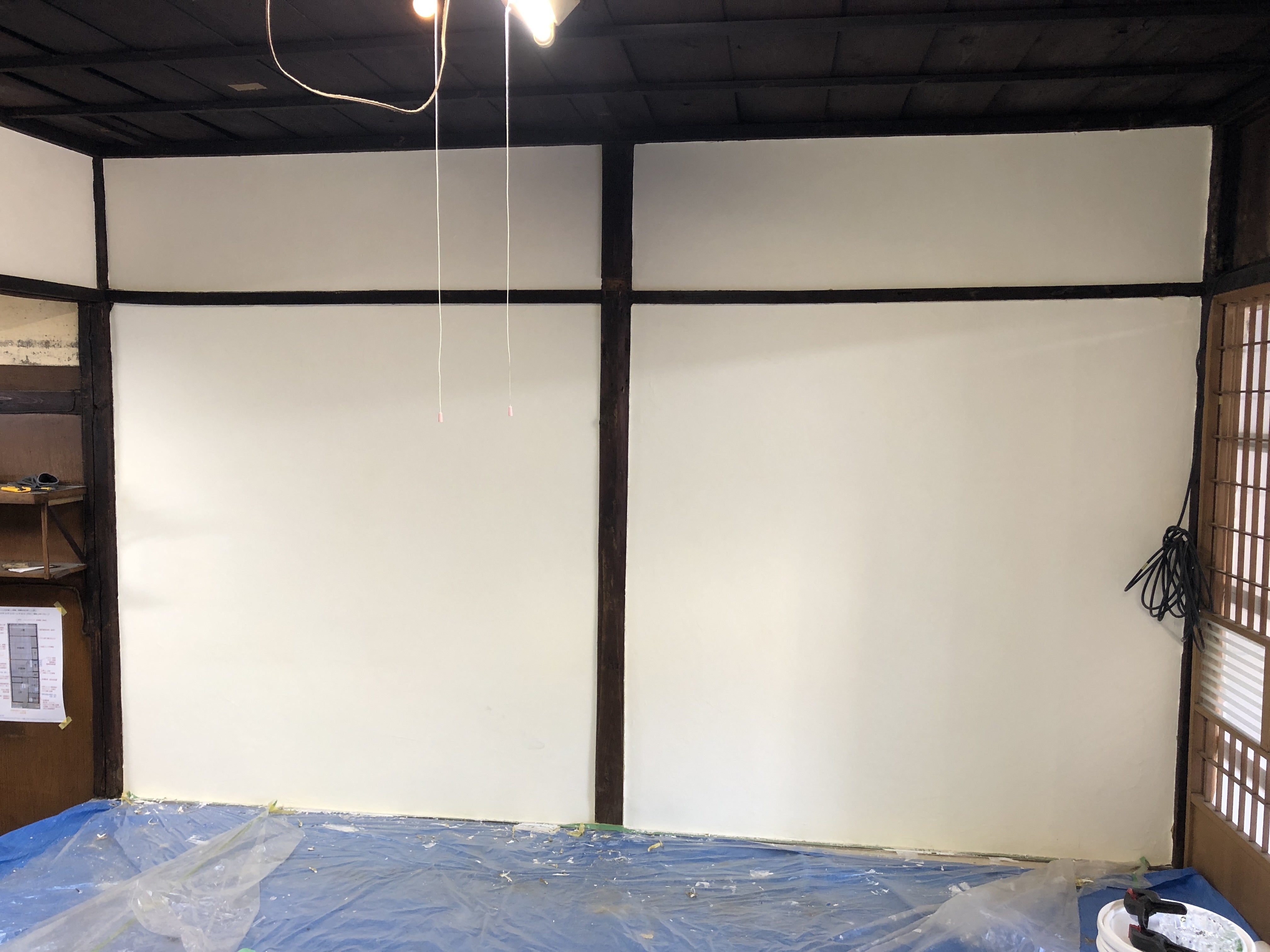 ↑11/14 の写真。床に接する面のマスキングテープはがしが終わっていなかった。