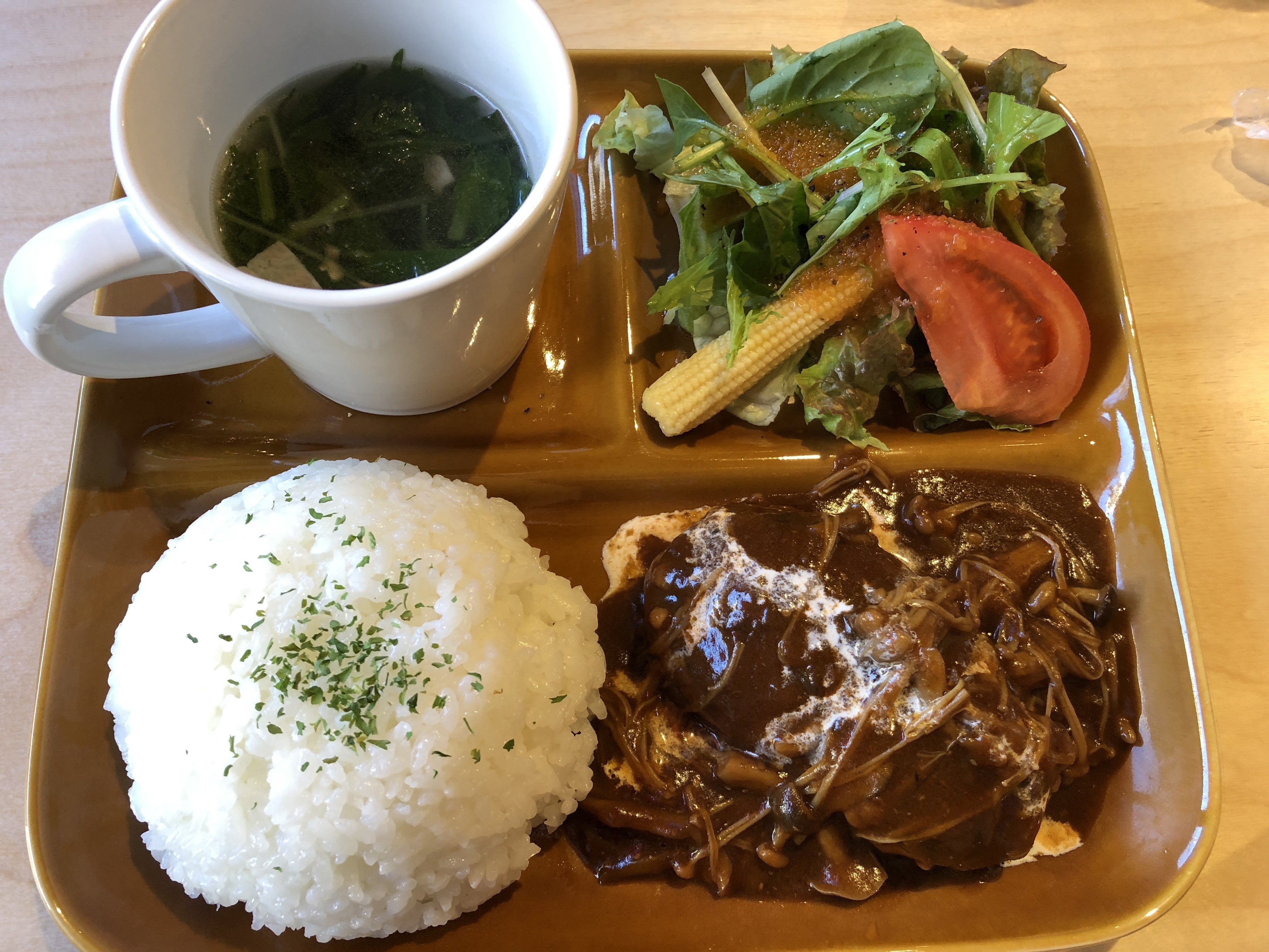ハンバーグは青梅の豚!勿論ごはんは大盛りです。