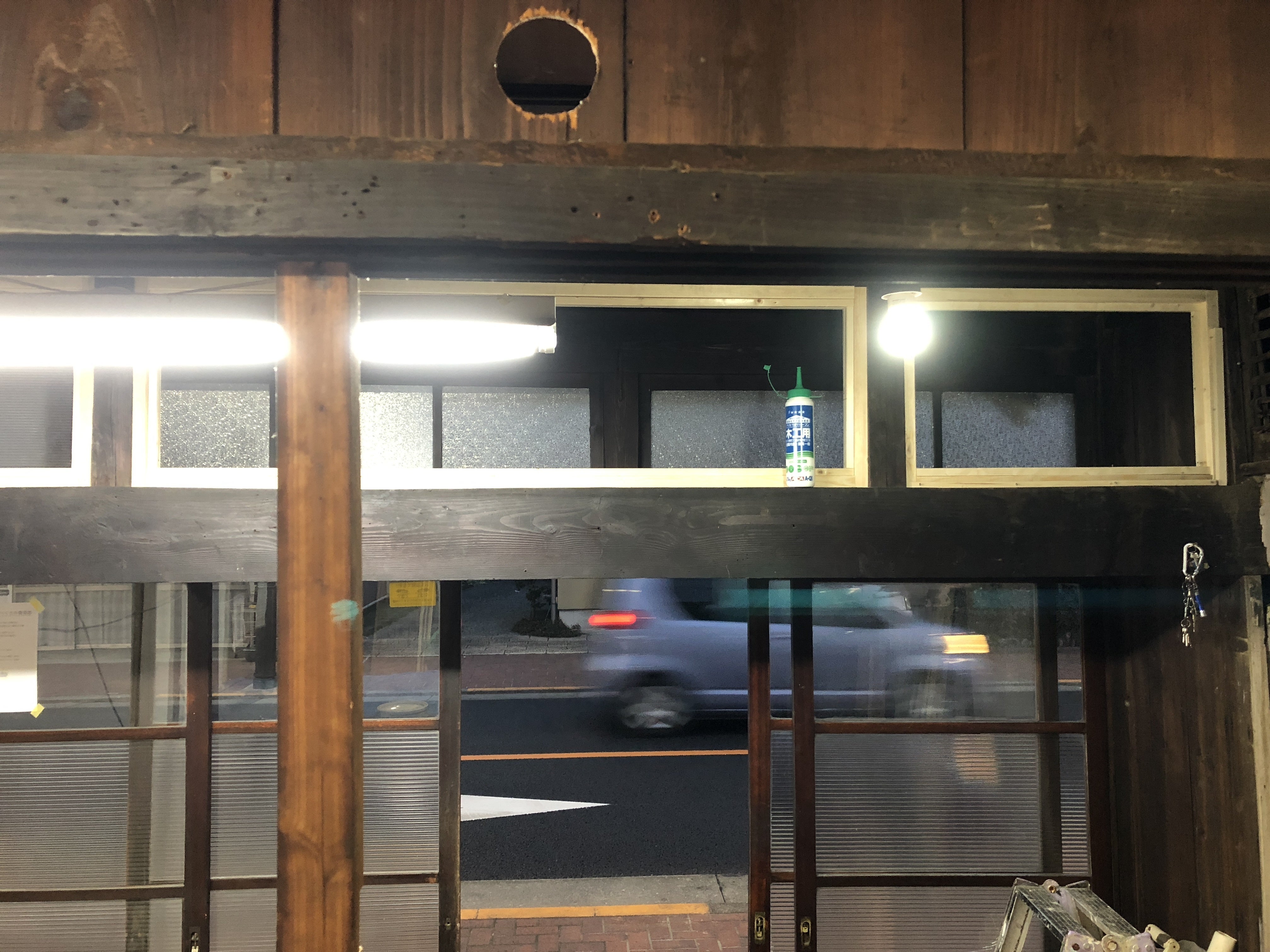 この窓枠、元々何もなかった梁の上に増設されたもの。