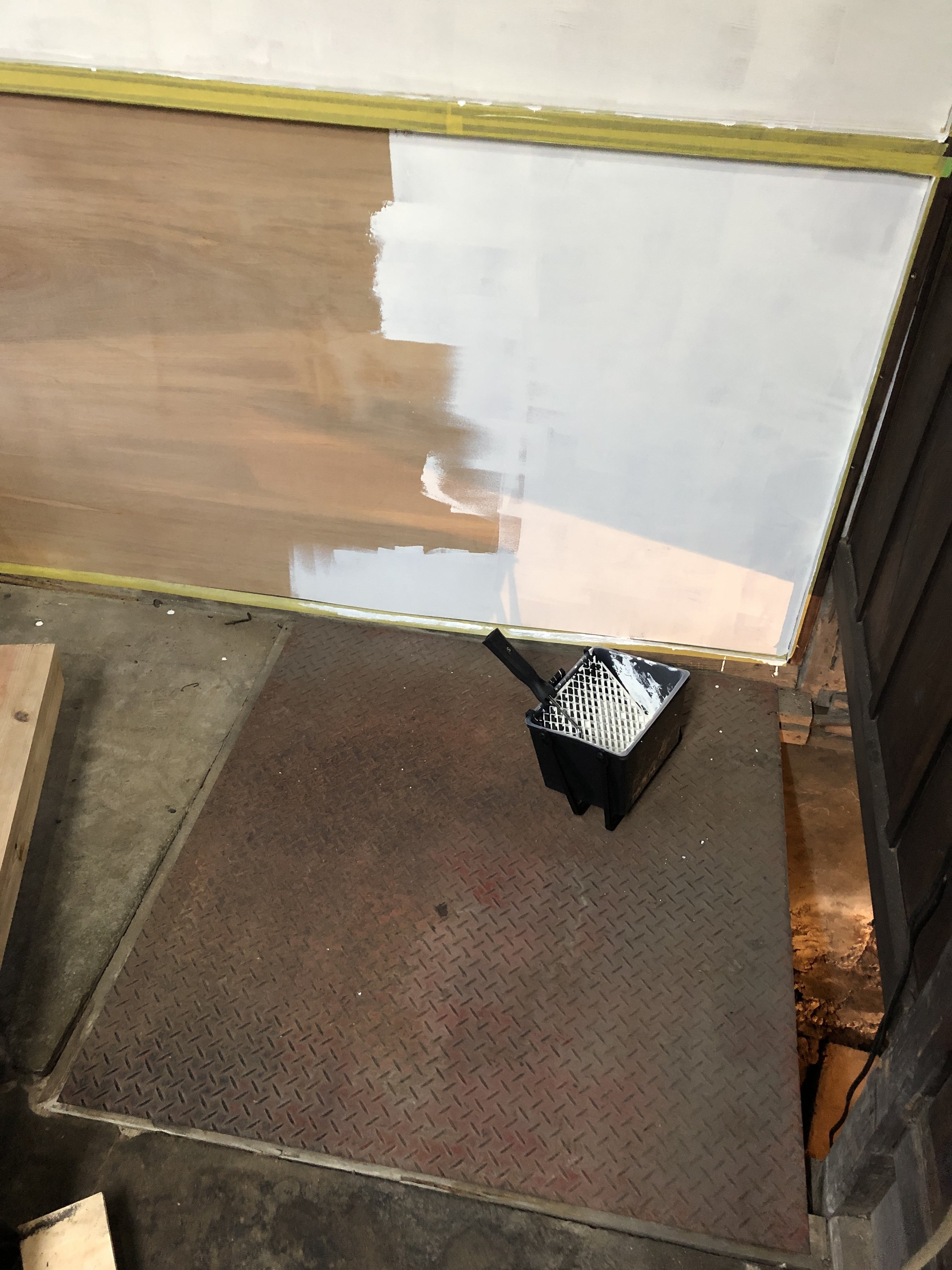 次は土間の反対側方の壁を塗り始めた。