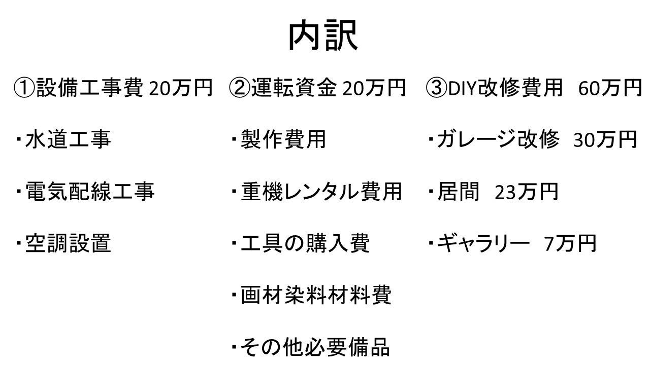 居住や製作のための最低限の環境整備は自費負担で進めているのですが、学生主体のプロジェクトのため十分な資金がありません。