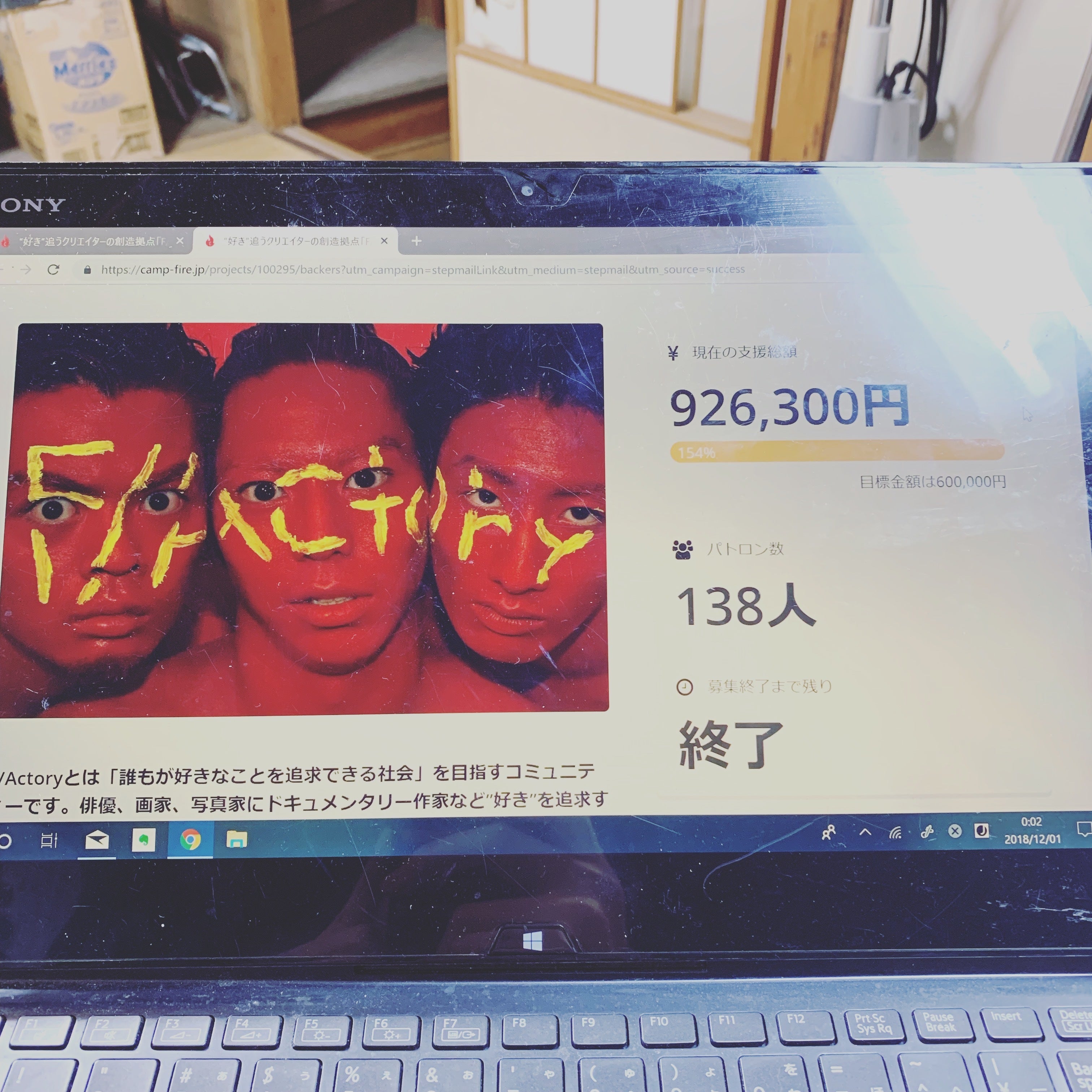2018/11/29 14:52こんにちはF/Actory代表の今野誠二郎です。この度は本当に本当に本当に、ご支援ありがとうございました! 100人もの方々に支えられ、60万円という金額を達成することが出来ました。こんなにも多くの同年代が支援してくれて、運営陣一同感謝と驚きの雨に打たれております。(70代の方まで...ありがとうございます!!!)みなさまへのご恩を忘れずに、責任をもち、DIY工事と運営を行ってまいりますので、今後ともよろしくお願いします!そして!!クラウドファンディングの終了まであと2日となりました!!!皆様のおかげで目標の60万円は達成したのですが、自分たちが想定するものよりもはるかに進化させていきたいと思っています!どこよりも集中でき、どこよりも想像力が沸き立つような、”あなたが好きな自分でいられる場所”にするため、130%を目指して頑張りますので、ご協力のほど宜しくお願いいたします!!12月に入りましたら、順次Facebookグループへの招待、リターンの作成を行ってまいります!どうか引き続きF/Actoryを温かく見守ってください!!イベントやリターンに関して質問などございましたら、F/ActoryのTwitterかInstagramの方にご連絡いただけたらと思います!!本日20:00からChatCast(https://t.co/liPns7arZv)でも質問受け付けています!お気軽にぜひご参加ください!改修後のF/Actoryでお会いできるのを楽しみにしております!!F/Actory 今野誠二郎 もっと見る