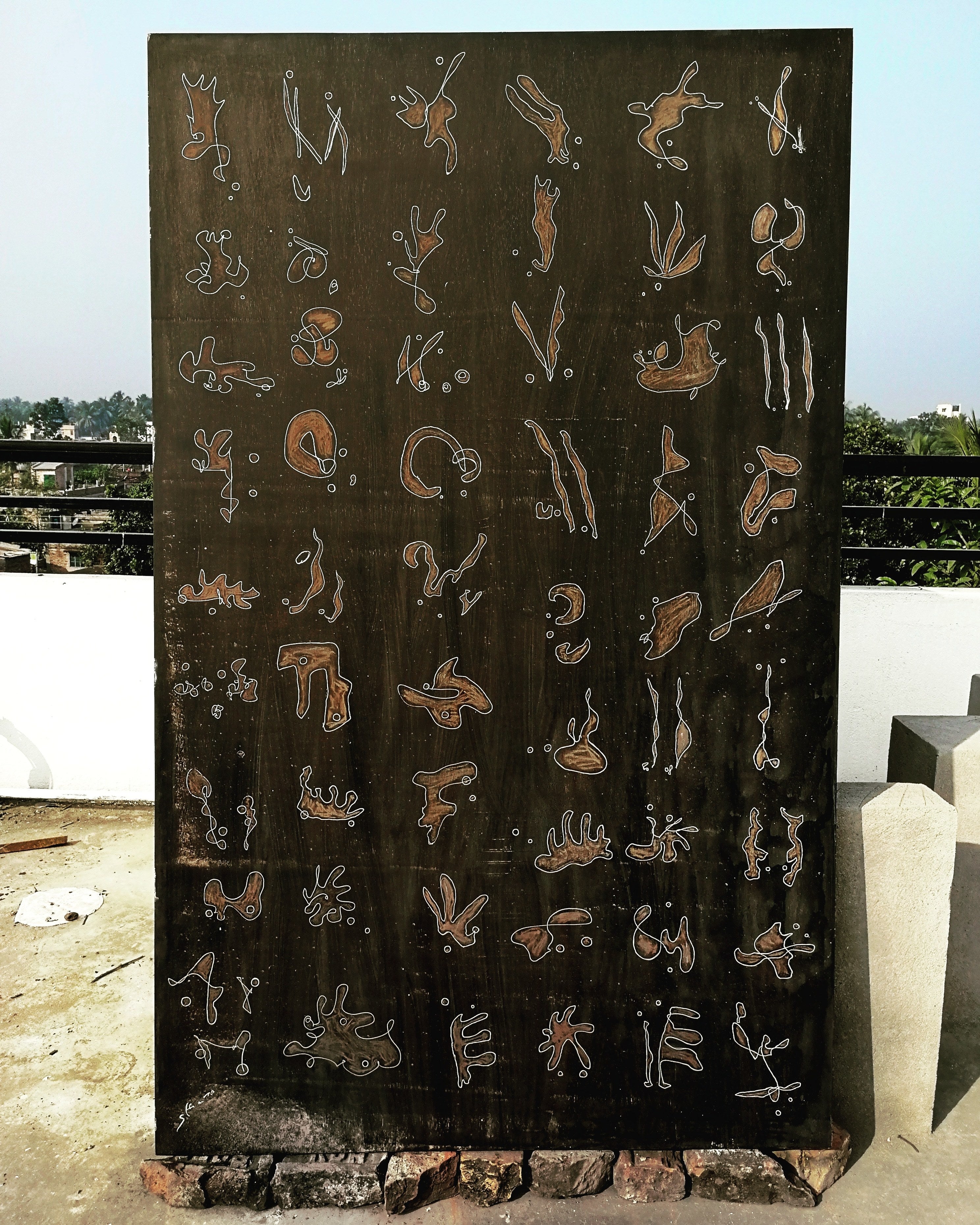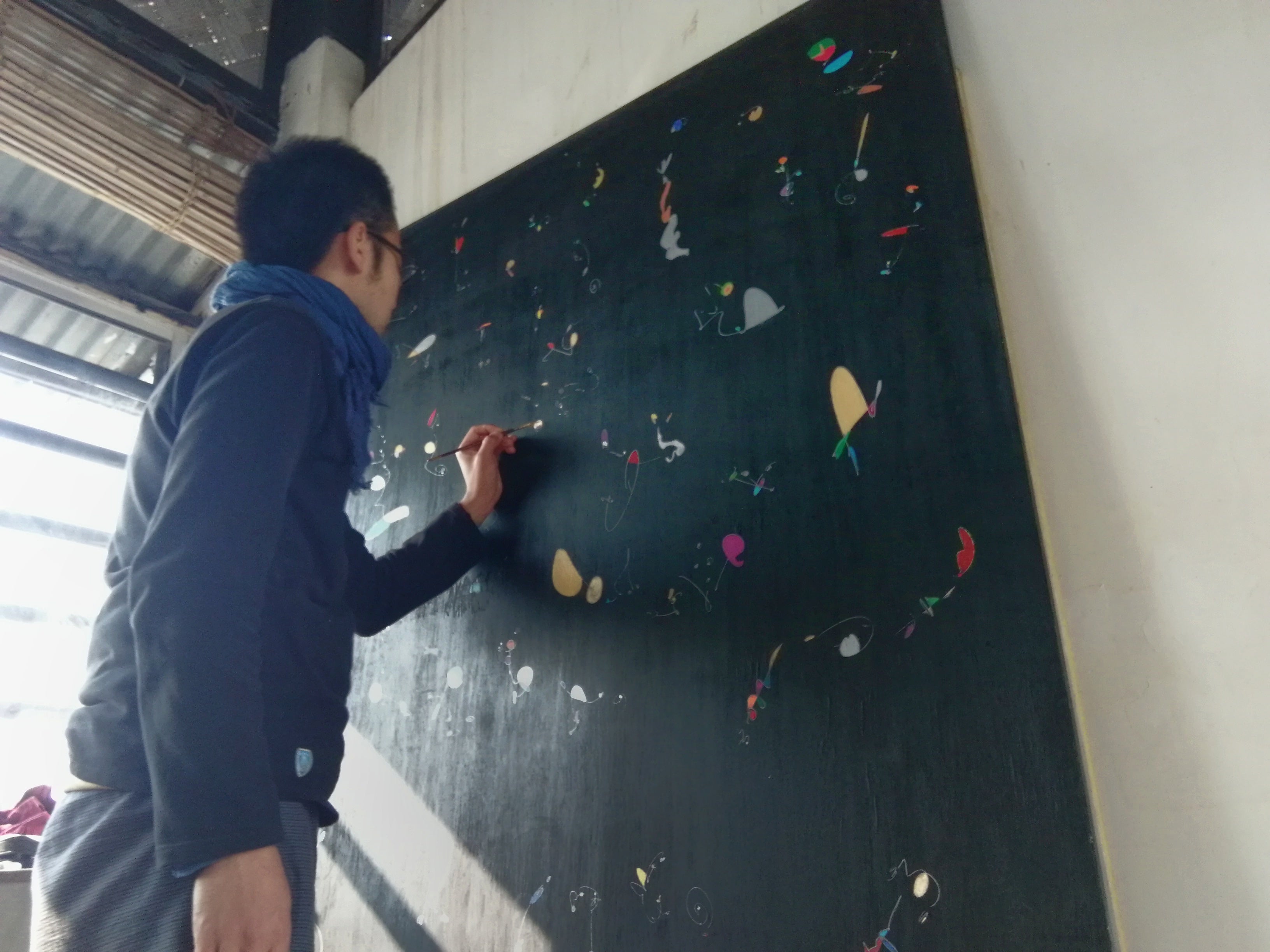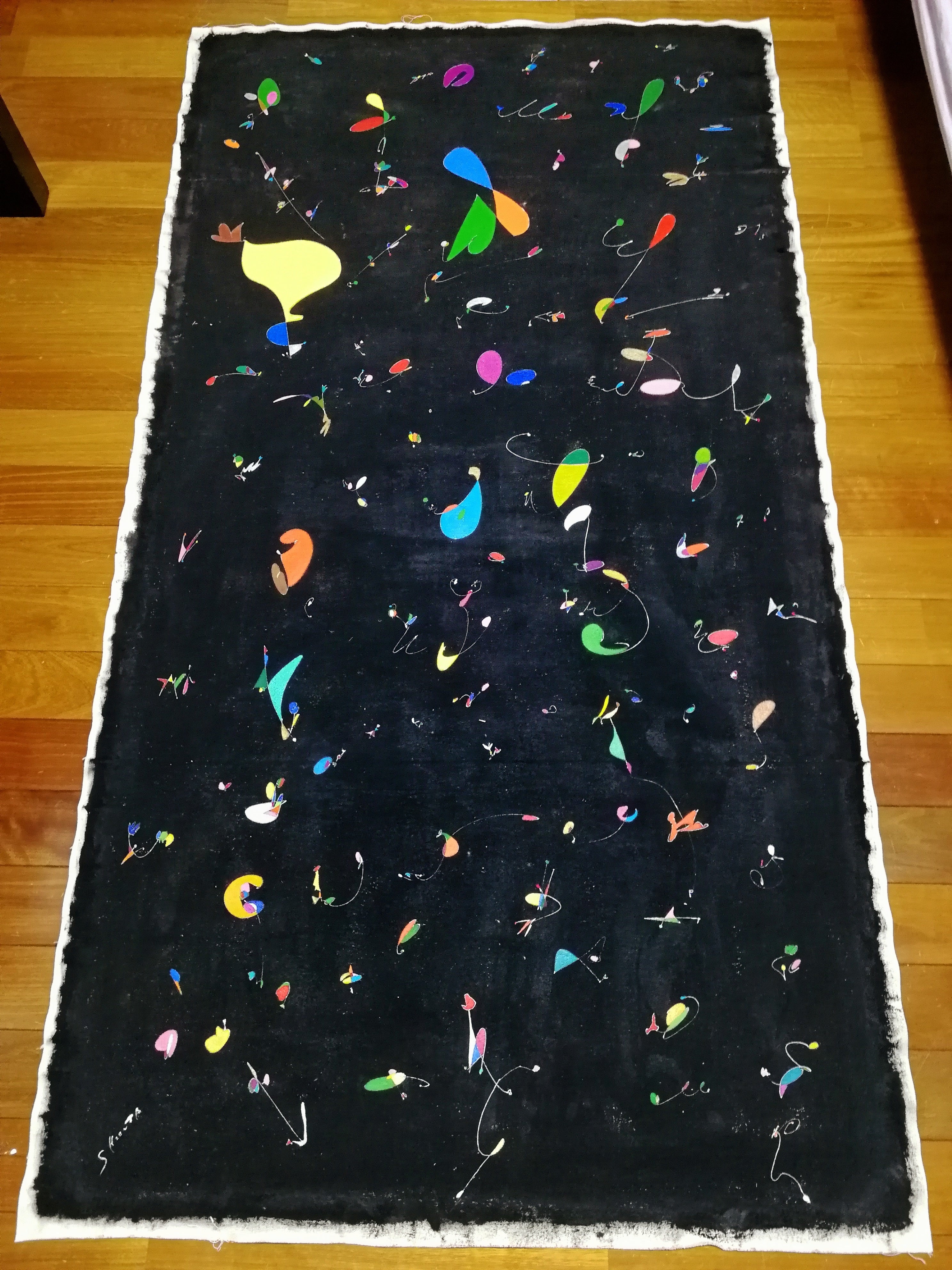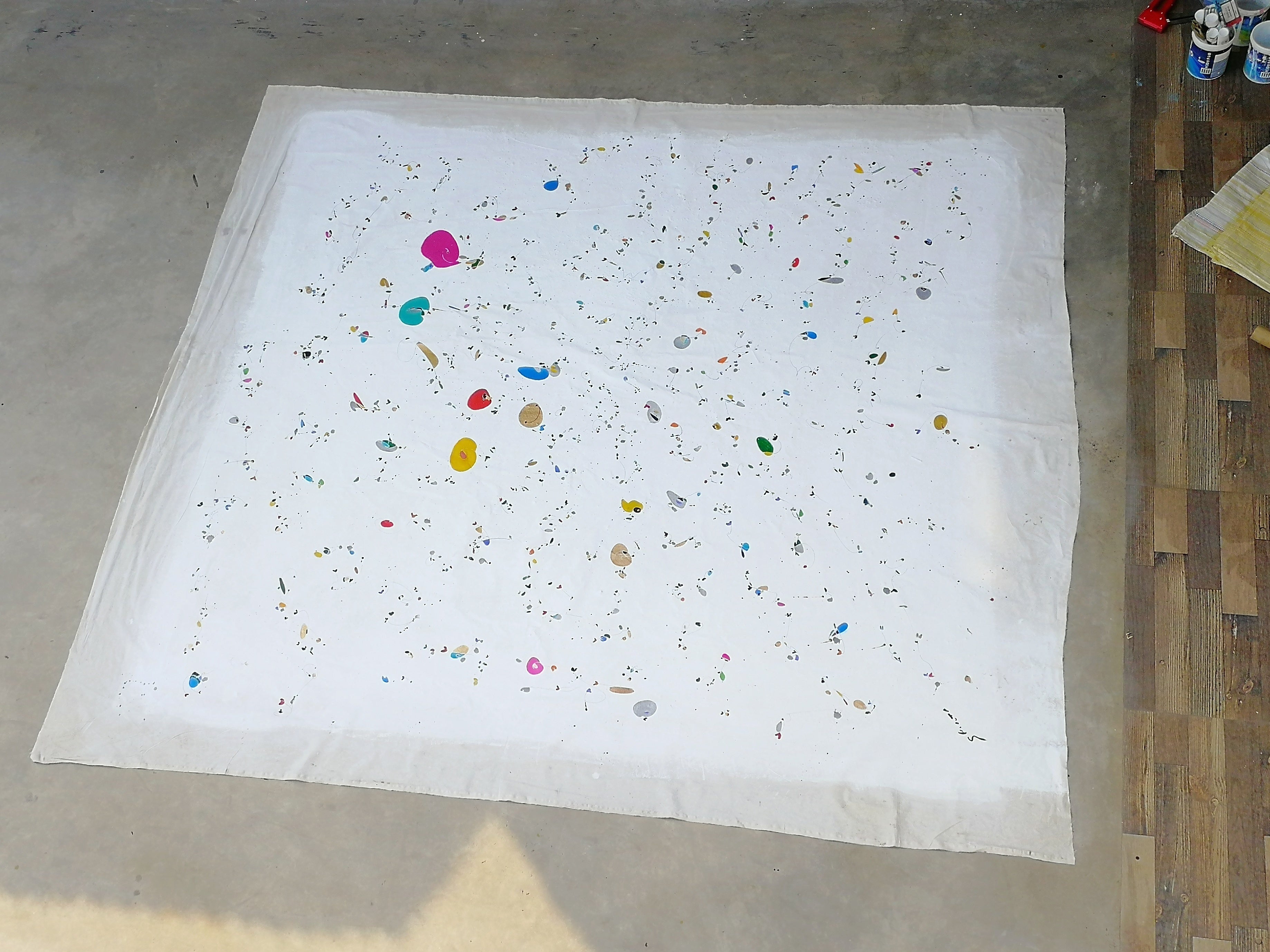 カタルーニャ語でカリカリという意味です。出来たての170cmの新作『million』を持ち込み前日に木枠に取り付けてキャンバス化