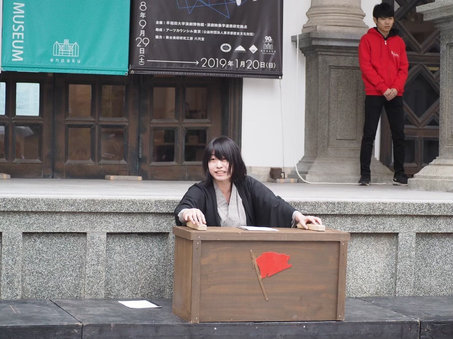 より多くの人に演劇を見て楽しんでもらいたいと思い、演劇博物館前で入場無料の野外演劇を行います!