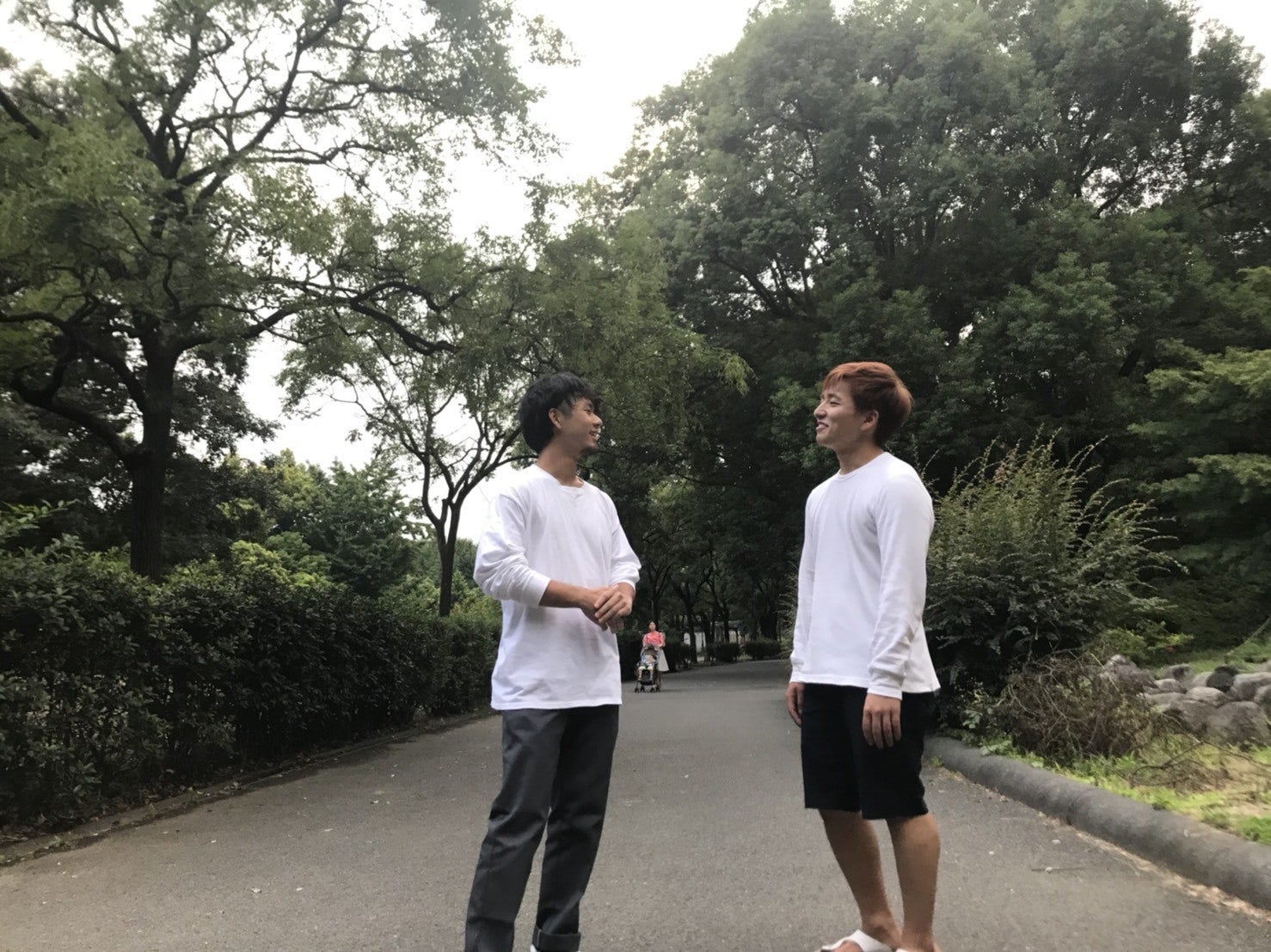 2018/11/01 11:57こんにちは。 早稲田祭野外演劇企画enpou主催「並行 ロミオとジュリエット」にて役者を務めている金森悠介と申します。 今回は、enpou代表の竹内遼と総合制作の新宅司による特別対談の後編です! 「前編をまだ見ていないよ!」という方はぜひこちらからご覧ください。 ▶︎前編はこちら:https://camp-fire.jp/projects/100467/activities/65412 インタビュイー竹内遼(enpou代表/脚本演出、写真左)、新宅司(enpou 総合制作プロデューサー、写真右) インタビュアー金森悠介(「家のカギ」所属/enpou 出演役者) ---------- 思うようにうまくいかない、役者集めと企画進行。ーー脚本が固まってからは、どんなことが大変だったのかな?新宅『作品の内容は固まったけど、実際の役者集めとか大変だったよね。竹内自身が「信じる」って言う舞台をやっていたから、あんまりこっちにガッツリとは、のめり込むこともできなくて。僕もバンドをやっていたり、わりかしハードなカメラマンのアルバイトをやっていたり、内定者インターンに参加していたりと結構大変だった。夏休みの間は、二人ともすごいハードだったんだよね。』 ーーなるほどねぇ。実際さ、人集めって結構難しいじゃん。 新宅 『まぁ、竹内の人望のおかげだよね。』 竹内『えー(笑)』 新宅『人数がここまで増えたのは 、劇研(早稲田演劇研究会)がやっぱり大きくて。竹内も劇研を辞めた身とはいえ、1年生の間でも結構知られていたおかげで、こちら側から声をかけた時はスムーズだったよね。』 竹内『もちろんそれだけではなくて、僕たちはがっつり企画書を用意して、脚本も用意して。この企画に参加する気があるなら、 「脚本もお渡しします」という状態にした。そこでちゃんとしてる人なんだなぁと思ってもらえるようにしたんです。』 ーー僕も最初、竹内と新宅と打ち合わせした時、「この人たちしっかりしているなぁ」って印象持ったもん。新宅『実際、どうでした?』 ーー二人が良いコンビだなっていう印象を持った。竹内が熱血派で、新宅が理論派みたいな(笑)。 どんな企画をやるのかも正直分からないし、自分が今までに挑戦したことがないような分野の演劇ということで不安は多少はあった。でも、二人がしっかりしていたからこそ、「まあ、やるかぁ」というノリになれたね。 新宅『他の人にも、そこが受けたんだろうね。何だか、むずかゆい話だね(笑) 他の役者は「コリオレイナス」で共演した役者とか、その知り合いを呼んできてもらったり。 たとえば、すぎま(役者:杉本茉由)とか。』 ーー彼、良いよね。初めての役者だと思わない。良い味を出している。 竹内・新宅 『全然初めてだと思わないよね!』 竹内『すぎまは、良い役者だって二人で会議しているときに都度、言ってます(笑)』 新宅『夏休みの間、役者集めが進まないし、企画もなかなか進まなかった。ちょっとヤバイなあという焦燥感もあって。そんな状況の中、竹内の友達、通称「竹内軍団」が、竹内の友達であるというただそれだけの理由で、制作面ですごく協力してくれるようになって。俺からすると全く知らない2年生だから、感謝はしつつも不安はすごいあるみたいな…笑』 竹内(竹内、この間、一人大笑い。) ・・・竹内軍団の話が8分程。止むを得ず『割愛!!!』 プロ意識の高い竹内と、それを裏で支える新宅の存在 ーー竹内軍団の話は一旦置いておいて(笑)。今の役者とかの印象を聞いても良いかな?竹内『印象かぁ。印象とはまた違う話にはなるんですが。演出家・脚本家として、自分たち二人が持つプロ意識と同じレベルまで、それぞれのバックグラウンドがある役者たちを、どれくらいあげられるかというところが勝負でして。 演出面においても、意図があることをしっかり伝えたり、役者からの質問などには真摯に向き合ったり、そういうことを強く意識していて。経験してない人に対してはもちろん、経験の多い方にも平等に、役者 対 演出家として、臆せずしっかり演出をつけるようにしていました。 そうすると、「あのレベルの人でも言われるんだから自分も頑張ろう!」とモチベーションも高くなっていているように感じた。』 新宅『演出をつける上で案外苦労したのは、 ちょっと経験のある人たち。初心者の方の方が喰らいついてくれる節があって。』 竹内『そうねえ。そもそも、役者個人のやるべきことって相当あると思っていて。僕なんかは、稽古前に2時間くらい喫茶店でどんな芝居をしようかと考えていて、稽古ではそれを見せるようにしている。でも、これはある意味プロ意識の問題なのかもなとも思っていて。僕の真意としては、そこまで必要なんだよと、そこまで求めてるんだよということを、今回の役者の方々に提示しなきゃいけないというのはありましたね。』 新宅『「enpou」はサークルでもないし、お金を払っている集団という訳でもないので、モチベーションの管理などが少し難しくて。竹内はもともとプロ意識が凄い高いけど、役者の中に