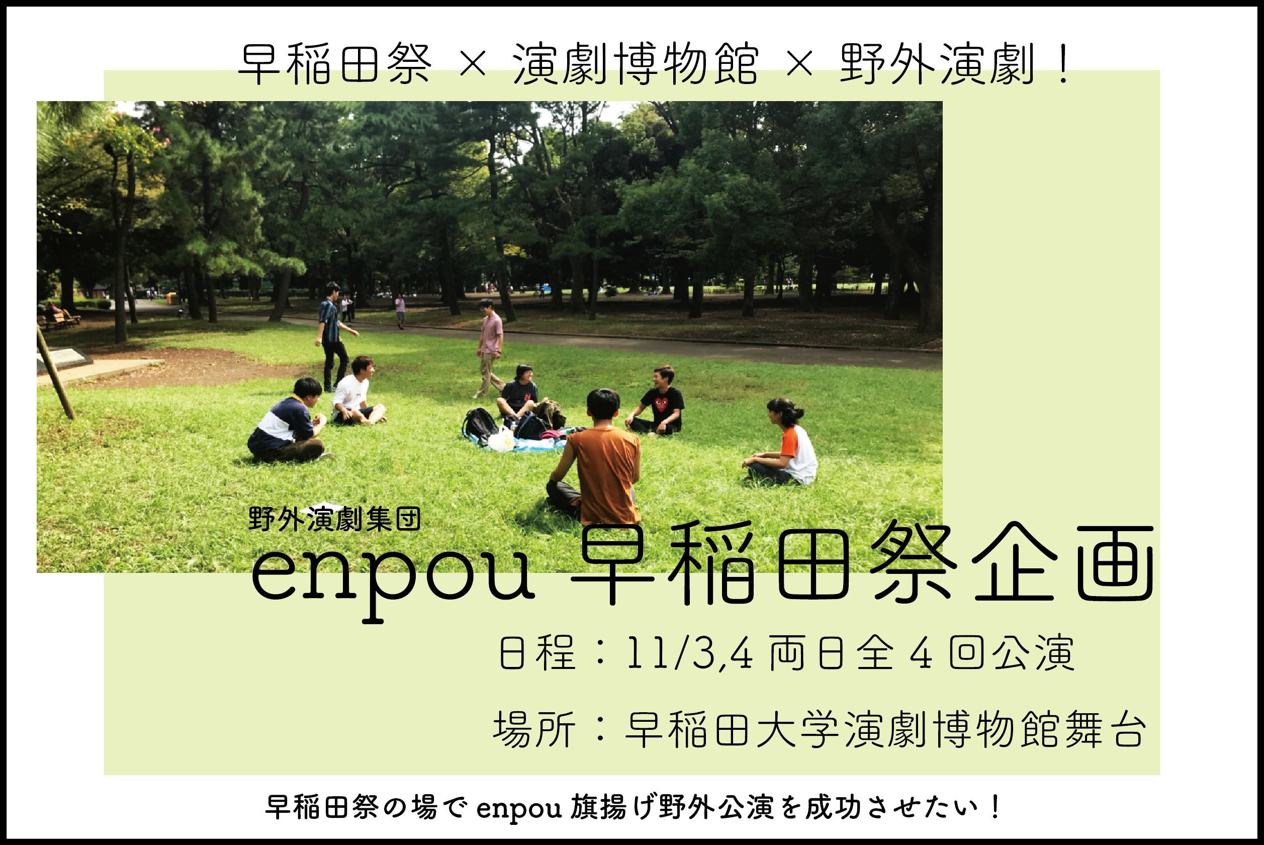 この度、enpouの旗揚げ公演として、早稲田祭(11/3,4)で野外演劇を上演することが決定いたしました。