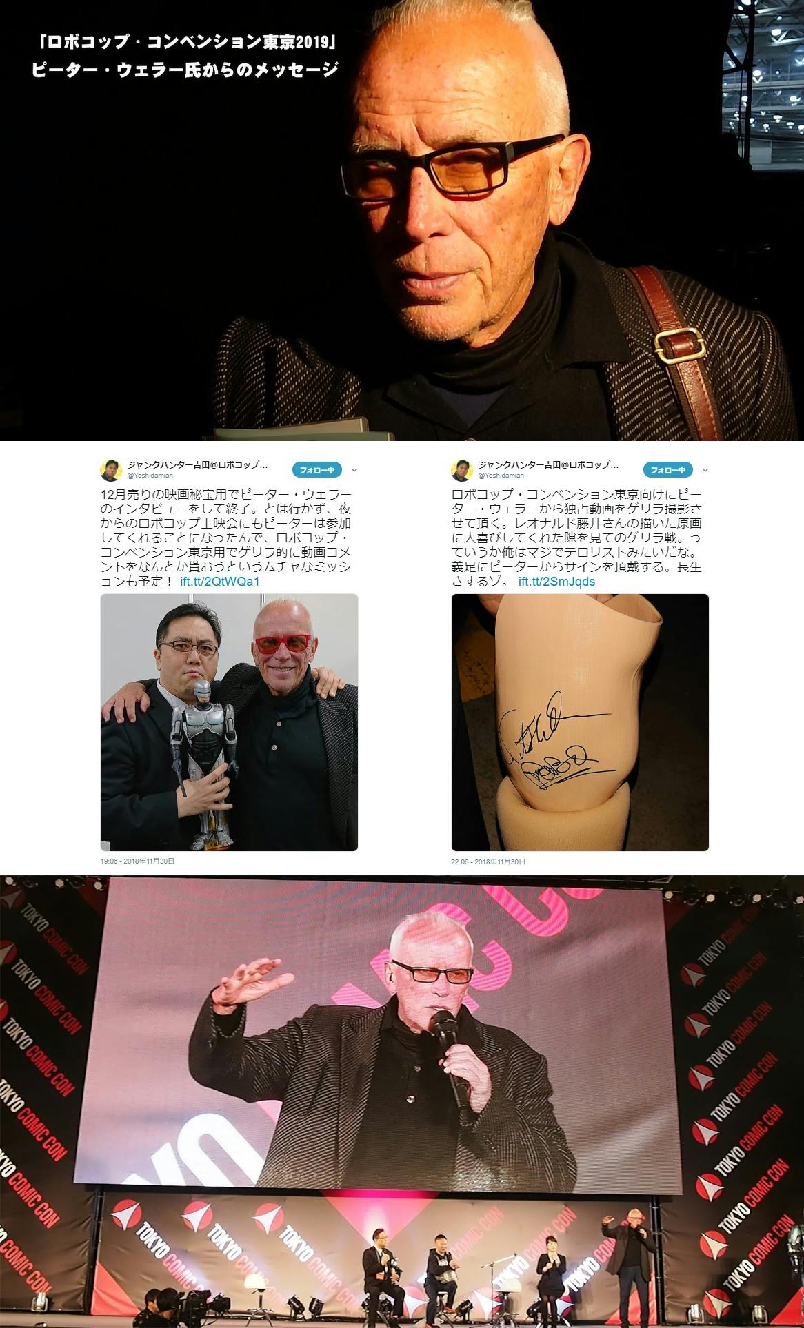 昨年末に開催された「東京コミコン2018」にて、ジャンクハンター吉田氏がピーター・ウェラー氏から直接頂戴した応援メッセージと、同日行われたトークショー登壇の模様をご覧いただけます!