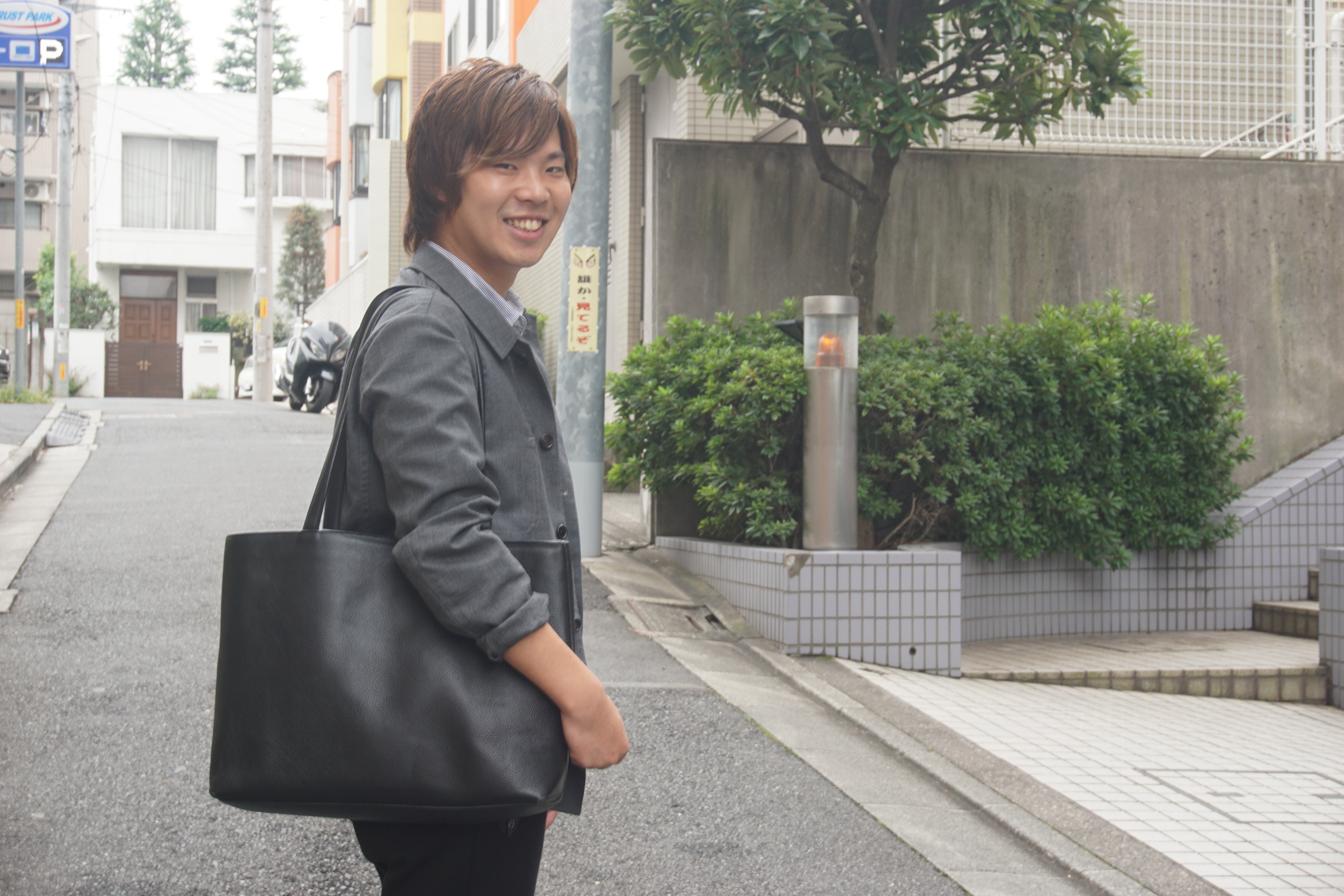 20代前半男性。東京でWEBコンサルタントとして活躍中。トートバッグ(ブラウン)使って頂いています。
