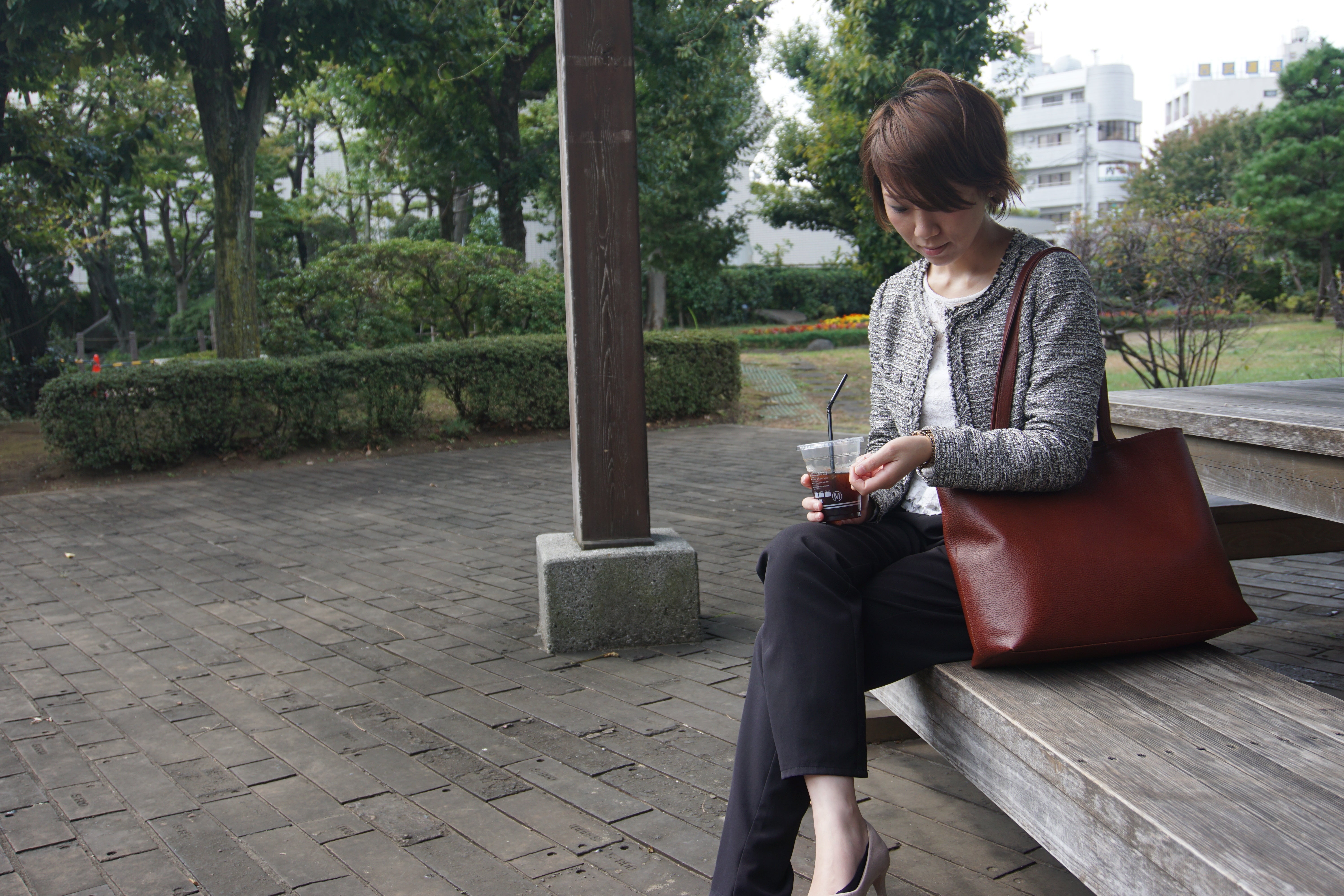 30代前半女性。パティシエから都内のIT企業に転職して活躍中。トートバッグ(ブラウン)使って頂いています。