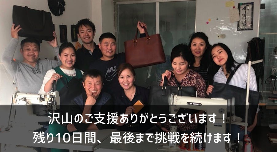 ストック切れに対して「バッグはもう無いのですか?」などのお問い合わせを多数いただき、最終日ですが急遽3月配送(製造が完了次第、随時配送致します。)のリターンを追加致しました。引き続き宜しくお願い致します。