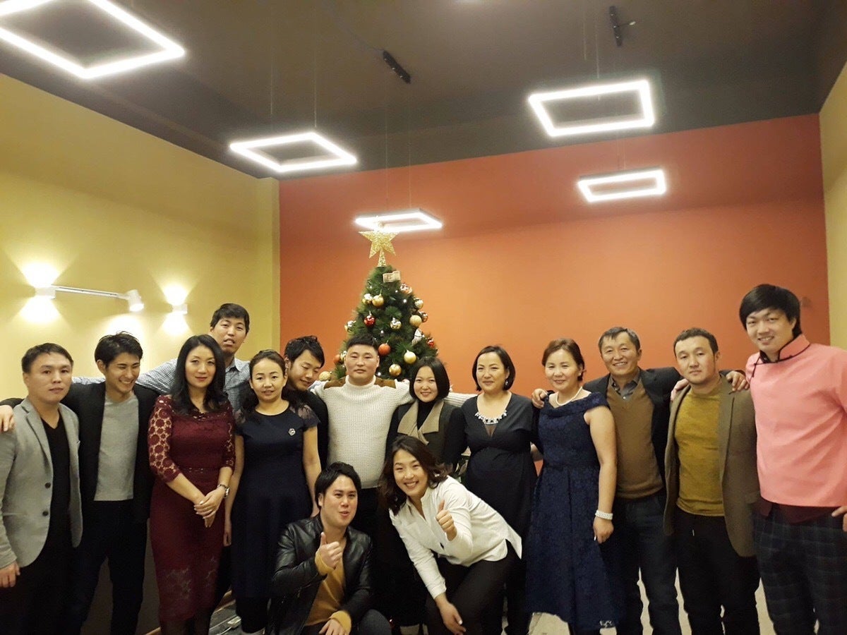 (モンゴルで一番のデパート前のイルミネーション) 日本のクリスマス文化とは全然違うということを僕も最近知りました。 また、モンゴルでは忘年会とクリスマスパーティーが一緒になったような会が年末に行われます。 通訳さん曰く、日本語にすると“忘年会”だけどニュアンスが少し違うということでした。 HushTugでも職人さんたちと“忘年会”を開きましたが、女性陣はドレスを着て、男性陣はスーツを着て参加するというパーティのような不思議な感じでした(笑)