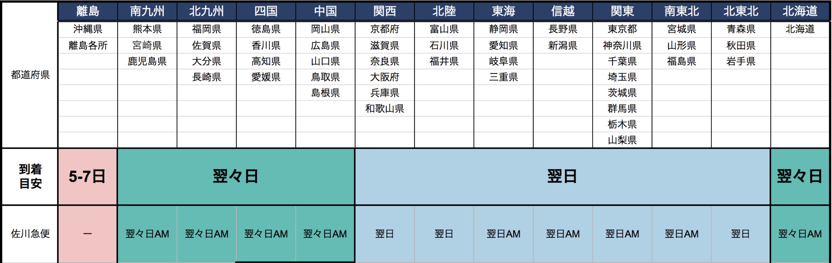 ご自宅への到着日は以下をご参照ください。到着目安の行は、発送した本日(01/15)を基準とした日にちです。
