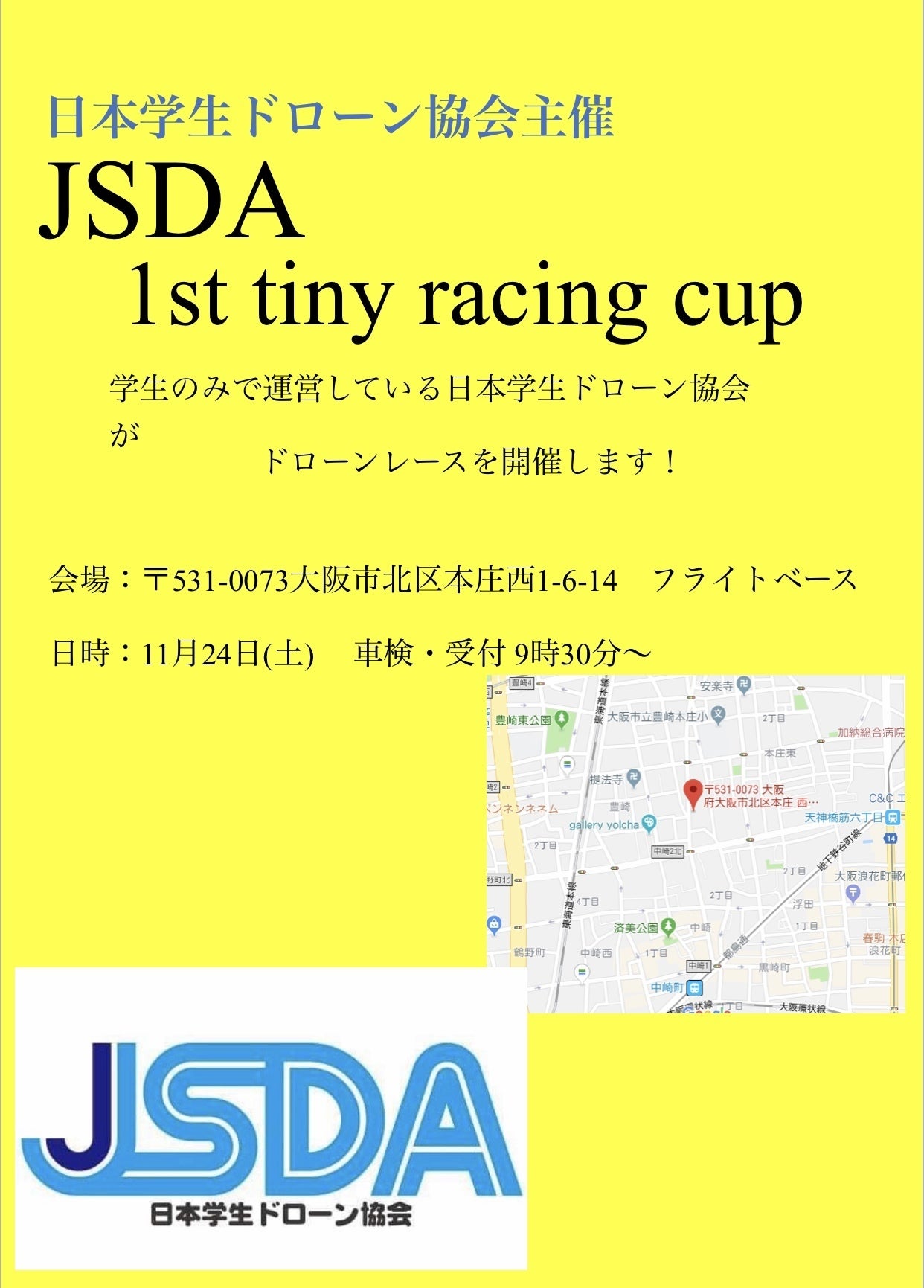 大阪市内でマイクロドローンによるレース開催をしレース活動の発展に貢献していきます。