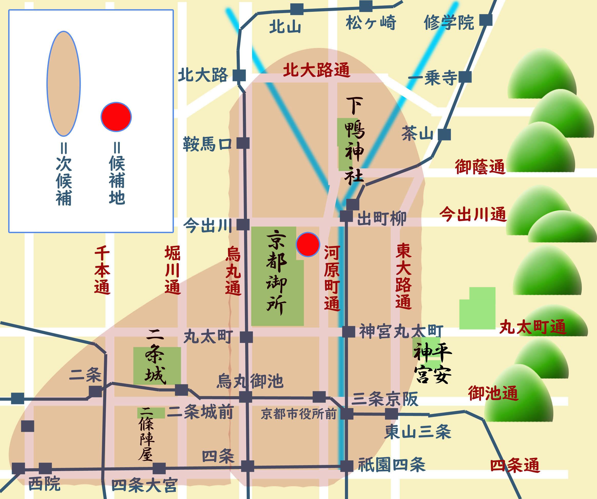スケジュールに掲載していますとおり、本契約は年明け後となりますが、候補地で成約とならない場合は、次候補を地図のエリアで検討しております。候補地と次候補エリアを地図に表記します。