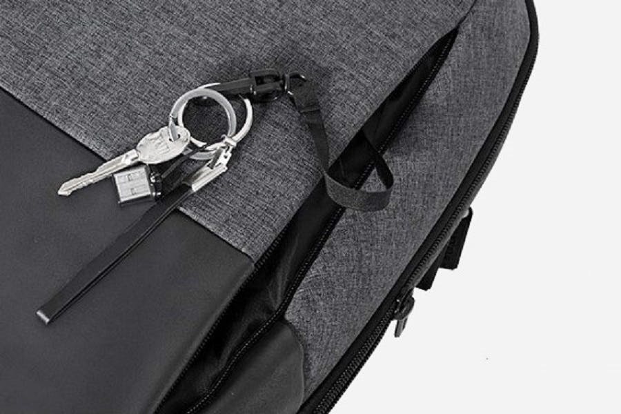 向かって右側のフロントポケット内に、ストラップ機能があります。鍵やキーホルダーはもとより、パスケースを付ければPASMOやSuicaなど収納ができます。