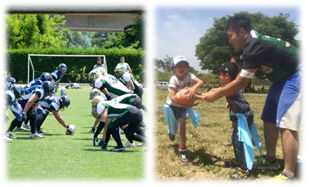 また、フラッグフットボールというアメリカンフットボールからコンタクト(ぶつかり合い)を無くした安全なスポーツの普及活動も行っています。