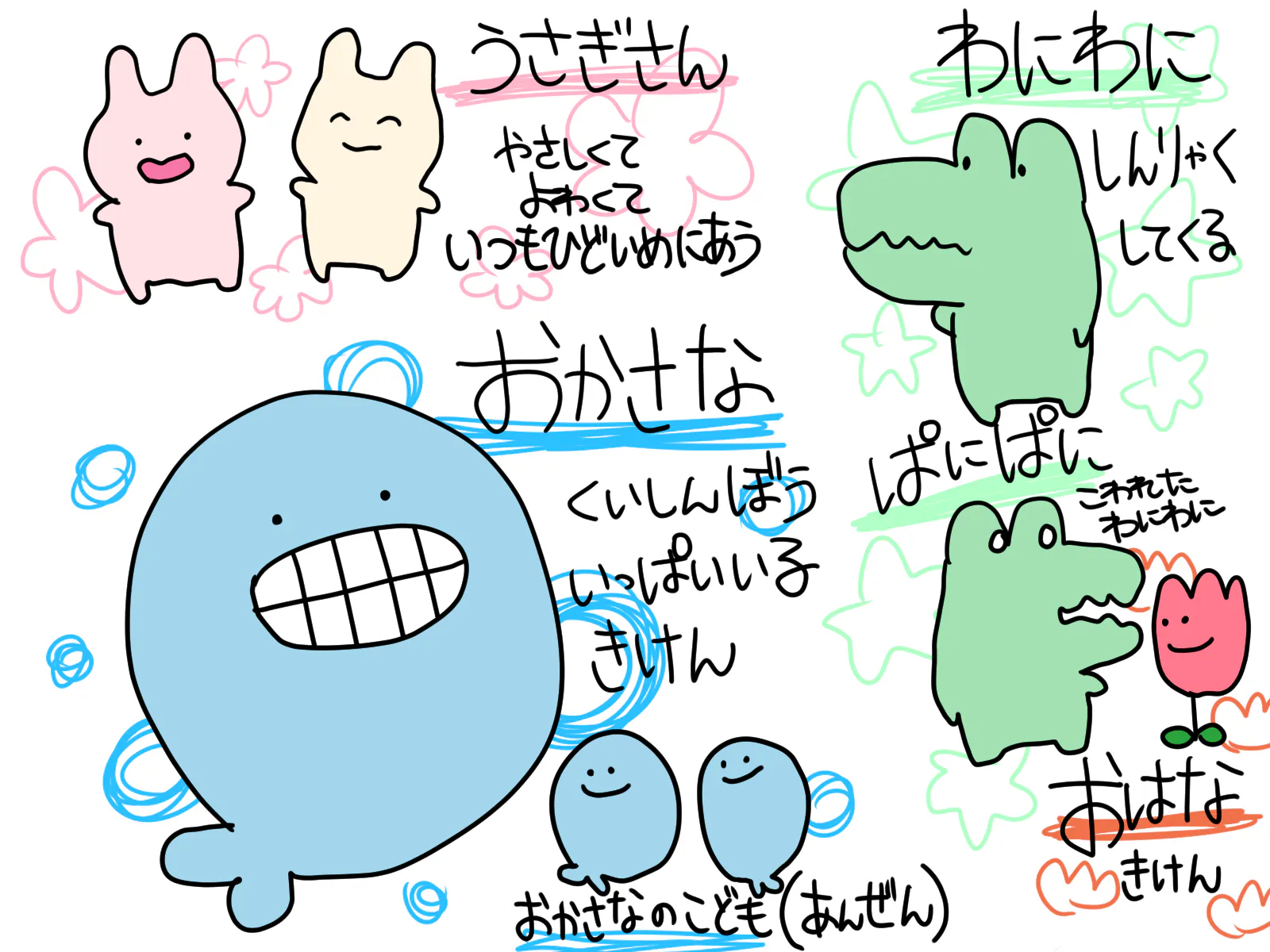 その他、シュールなキャラクター達が『うさぎさんとおかさな』ワールドにいます。