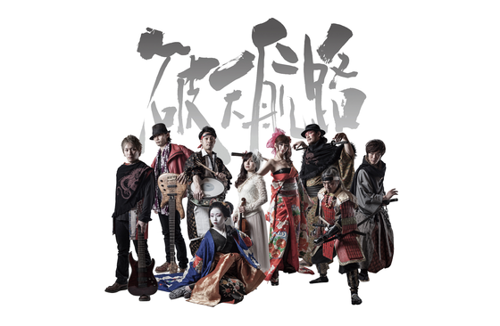 バイオリン、8弦ギター、重低音リズムの楽器メンバーに加え、生演奏のライブで殺陣、日本舞踊、ダンスが入り交じる、世界のどこにもない唯一無二のバンドです。