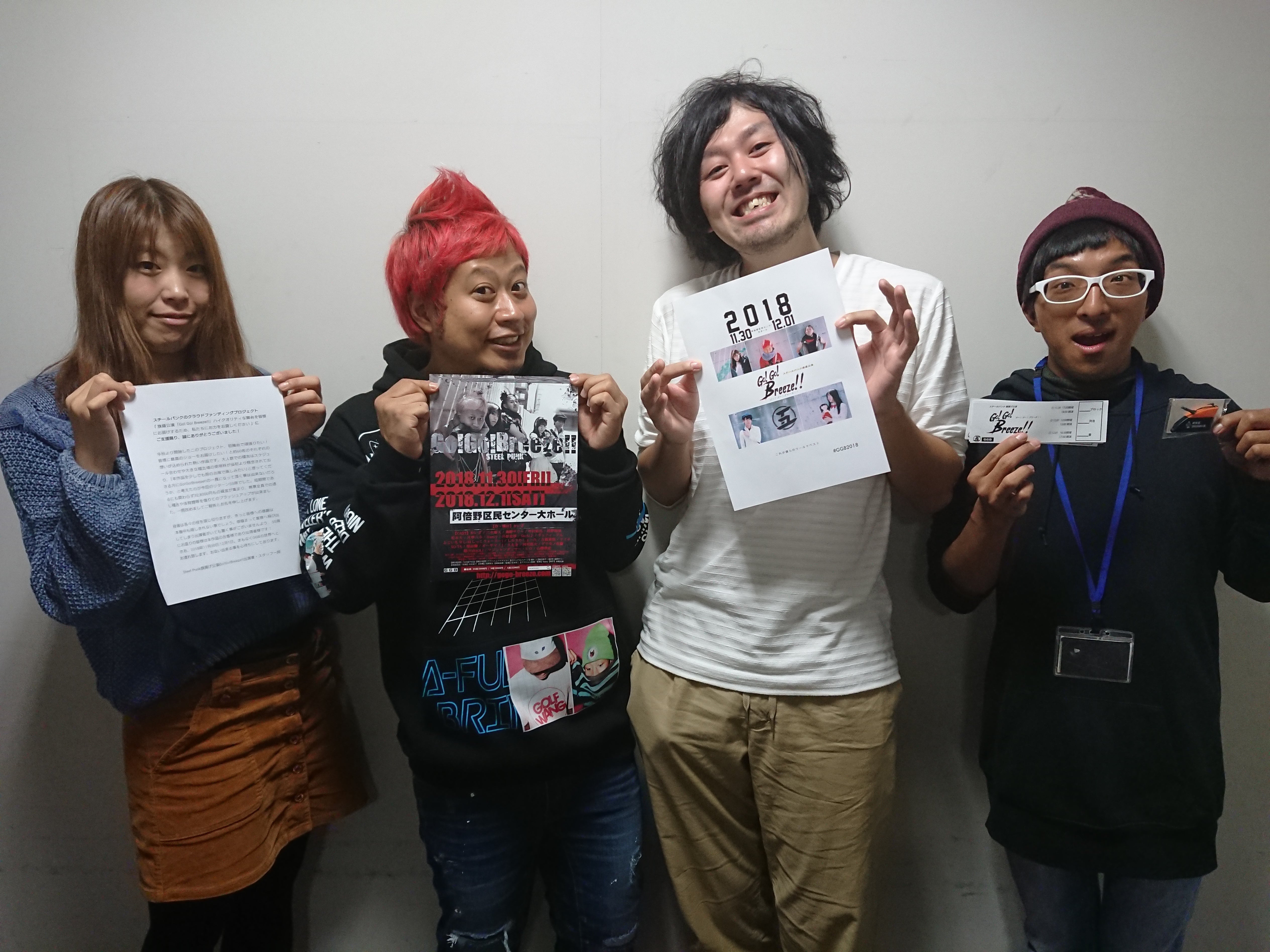 2018/11/19 10:232018年11月18日(日)夜。ご支援頂いたパトロン様へ出演者からチケットを手渡しさせて頂く、お渡し会が開催されました。予定していた かいざ、三木海人、島野サリー、そして当日イベント出演でかいざと同行していたグッティ・テル、たまたま近くで稽古中だったゲテモノ佐藤らも参加!お忙しい中、たくさんの方にお越しいただきありがとうございました!予定より少し(?)コンパクトな会場になった為、たくさんのキャストに囲まれてしまったお客様のびっくり&嬉しい笑顔が忘れられません(笑)見事、2日間も最前列をゲットされたお客様には拍手喝采が起こり、なんとも賑やかでアットホームな会となりました。残念ながらご参加頂けなかった方へもチケットとお礼状をセットにして、当日会場にてお渡し致します。誠にありがとうございます!!楽しみにしていると仰ってくださるその声が何よりの励みになります!稽古ラストスパート、当日は勢い余って全力で皆様のお席に突撃します(本当に突撃はするなと言ってありますので恐らく大丈夫です、ご安心ください)会場で皆様と「共演」できますことを心よりお待ちしております♡♡スチールパンク旗揚げ公演「Go!Go!Breeze!!」出演者・スタッフ一同 もっと見る