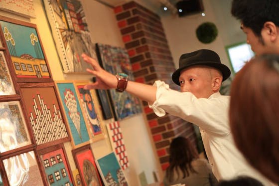 写真は、ほろ酔いで絵の説明をしている僕です。笑