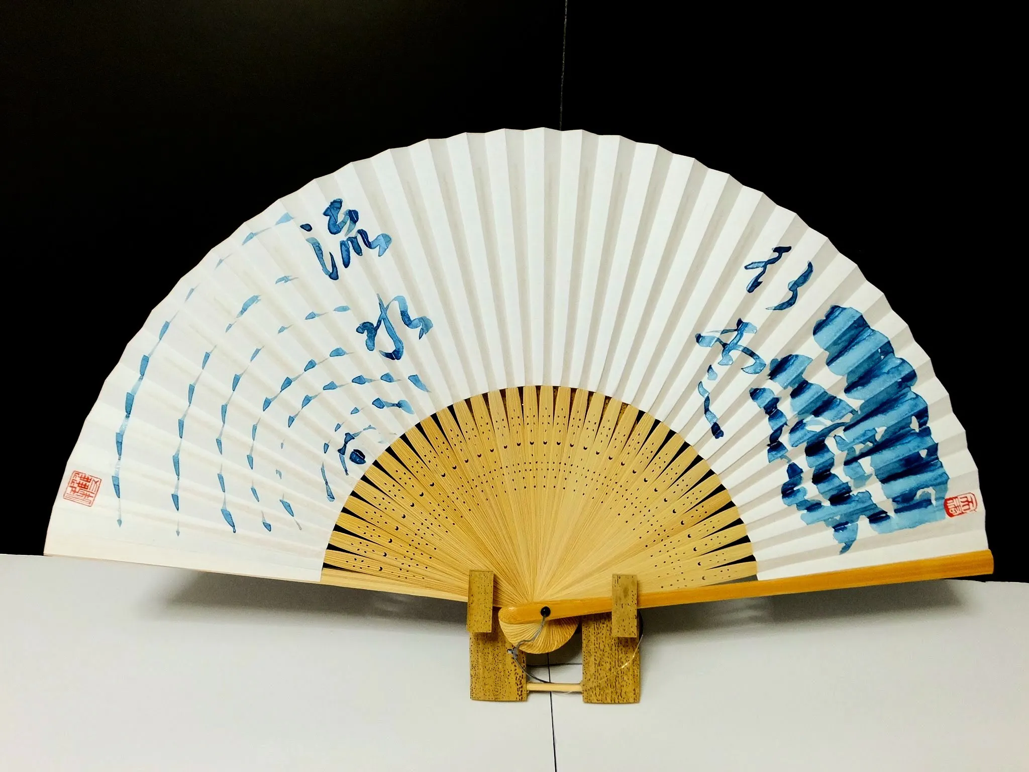 扇子は日本ならではのアイテムなので、ロンドンの方にも喜んで頂けるであろうと、作品に使うことにしました。