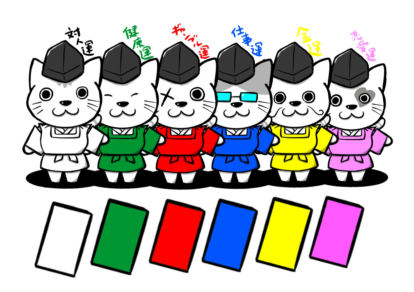 このゲームは運命のみくじをくれる6色の猫「六猫足彩(むびょうそくさい)」を