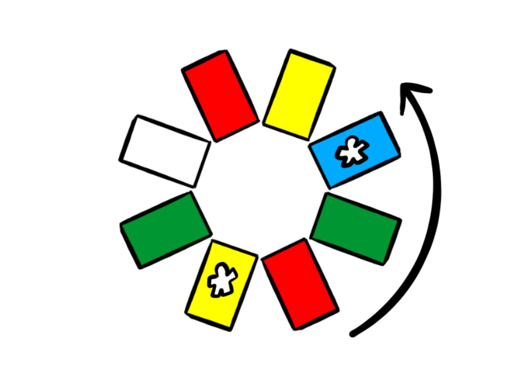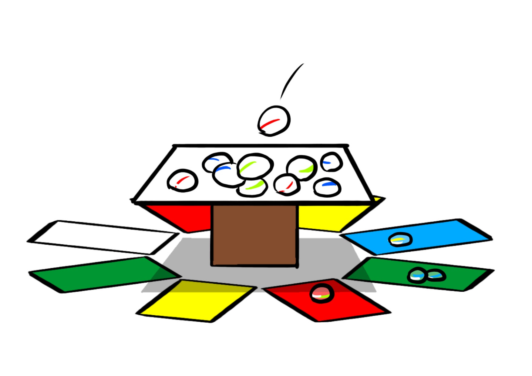 各プレイヤーに3つずつ渡され進んだ先のカードのおはじきを手に入れることができます。