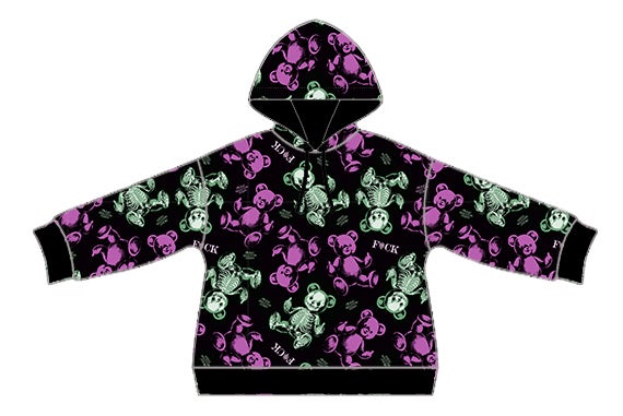スケルトンテディは、数あるDrug Honeyの個性的な柄の中でもNo.1の人気を誇る、ブランドの看板テキスタイルです。