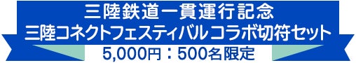 ・物品:フェス特製リストバンド、フェス特製マフラータオル、三陸鉄道一貫運行記念三陸コネクトフェスティバルコラボ切符、三陸鉄道ギフト山の幸10,000円支援コース、三陸鉄道ギフト海の幸10,000円支援コース、三陸鉄道鉄道ダンシギフト10,000円支援コース、三陸鉄道菅野さん厳選!三陸ベストセレクション支援10,000円コース、三陸聖地化委員会ヒラダテ議長厳選!三陸ベストセレクション支援10,000円コース、佐藤ひろ美社長厳選!三陸ベストセレクション支援10,310円コース、三陸鉄道ギフト山の幸・海の幸19,800円コース