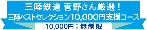 三陸鉄道ギフト山の幸10,000円支援コース、三陸鉄道ギフト海の幸10,000円支援コース、三陸鉄道鉄道ダンシギフト10,000円支援コース、三陸鉄道菅野さん厳選!三陸ベストセレクション支援10,000円コース、三陸聖地化委員会ヒラダテ議長厳選!三陸ベストセレクション支援10,000円コース、佐藤ひろ美社長厳選!三陸ベストセレクション支援10,310円コース、三陸鉄道ギフト山の幸・海の幸19,800円コースは、フェス終了後宅急便にて送付します。(運送会社は佐川急便様かヤマト運輸様になります、こちら業者のご指定は出来かねますのでご了承下さい。)