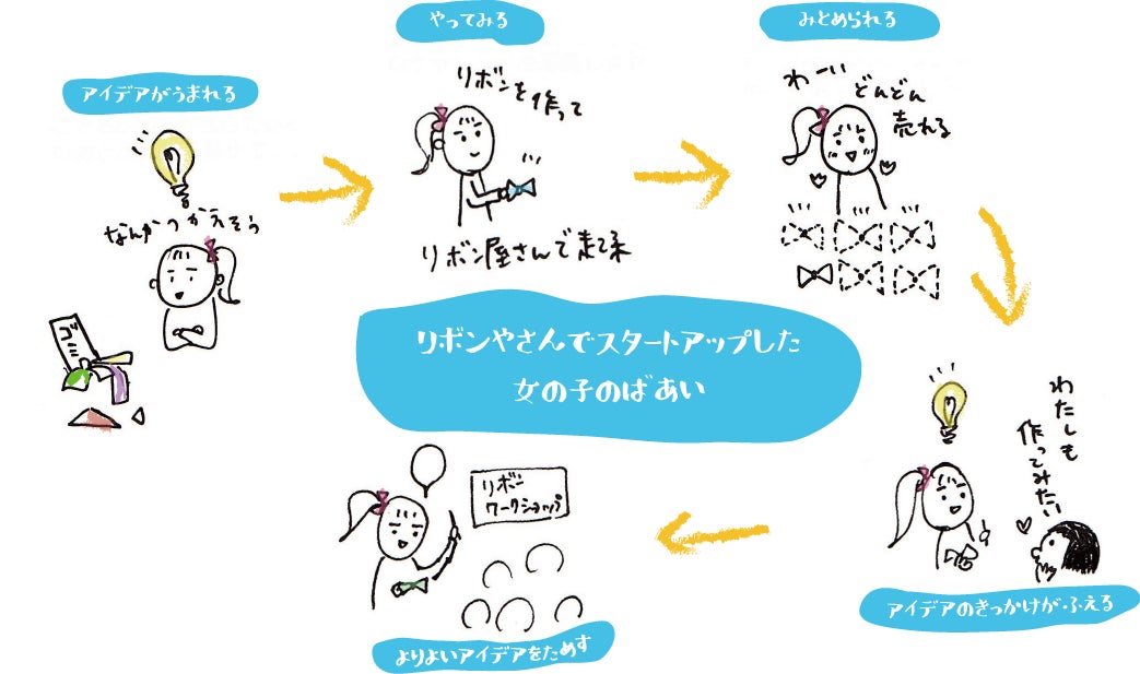 `内容がゆるふわワークショップじゃないので、辛いこともあるかもよ?’、‘おとなの世界に一歩ふみだすよ’という意味でスタートアップという言葉を選びました。