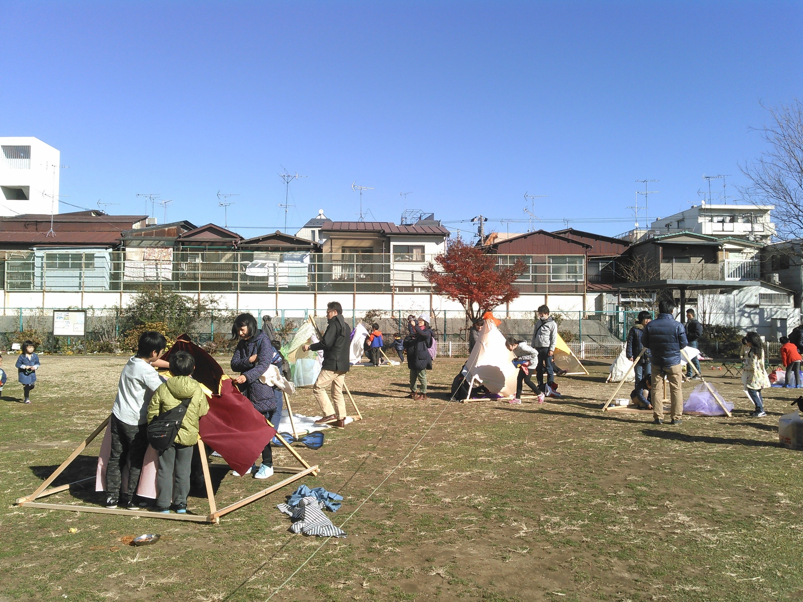 ↑ 隣接公園で2016年に実施した建築系ワークショップの様子。