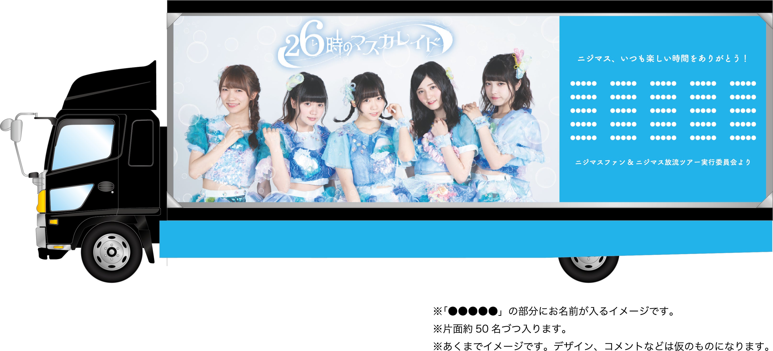 11月24日のツアー最終日に向けて東京でトラック広告を走らせます。トラック広告にはメンバーの写真とご協力いただいたファンのみなさまのニックネームを載せさせていただきます。