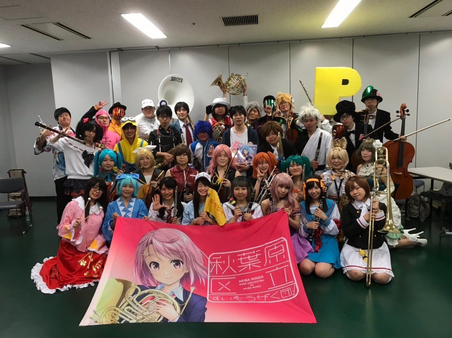 秋葉原区立すいそうがく団!(通称:あきすい!)はアニメやゲームを愛するプロフェッショナル奏者・音楽大学の学生・トップクラスのアマチュア奏者など200名を超える楽団員で構成される吹奏楽団です。