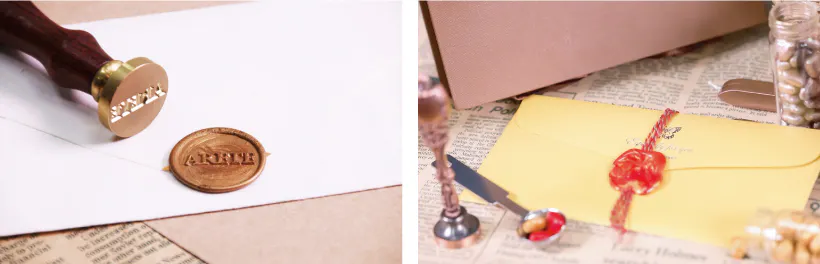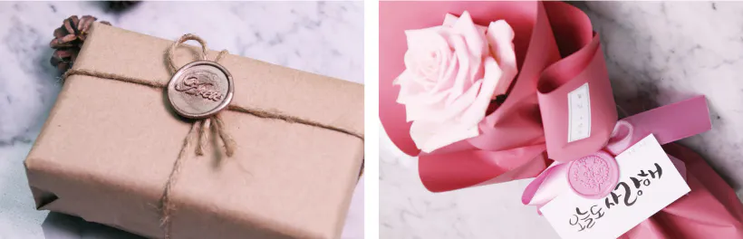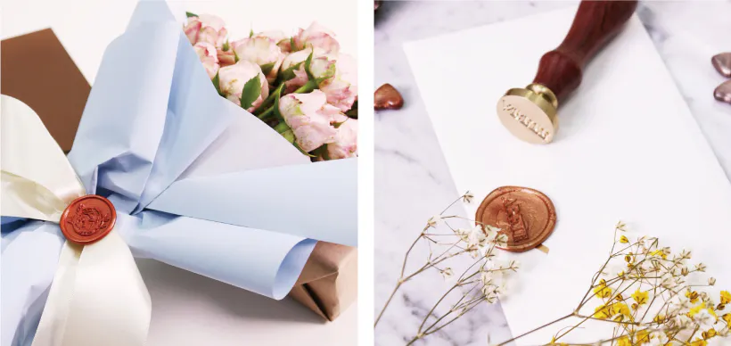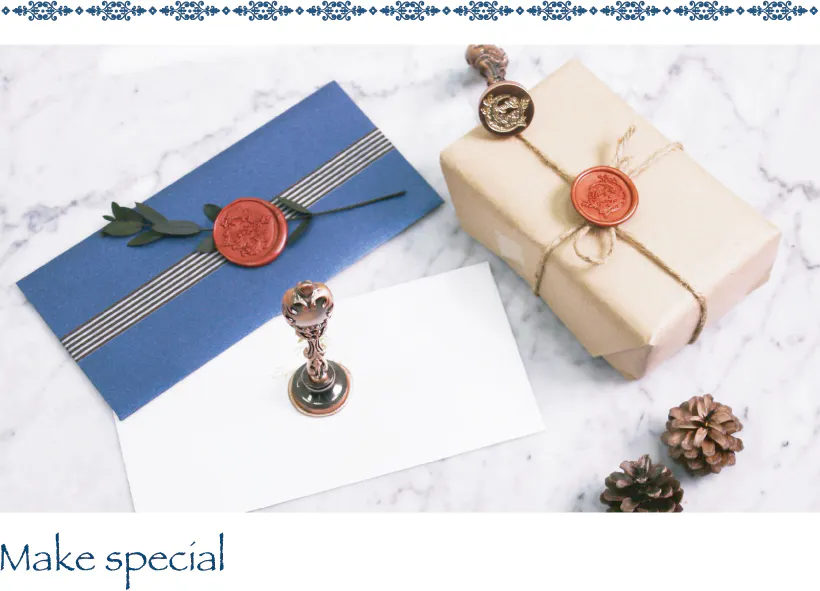 プレゼントや手紙、案内状などにもワックススタンプを押してお渡しすれば、より相手の印象に残るプレゼントとなるでしょう。
