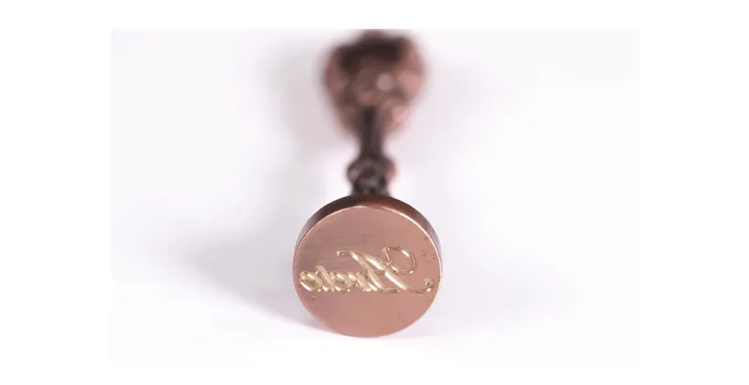 A:木製ハンドルのシーリングスタンプは、ハンドル部は華櫚木という高級木、スタンプ部は真鍮で出来ています。銅製ハンドルのシーリングスタンプは、ハンドルもスタンプ部もすべて赤鍮(レッドブロンズ)で出来ています。