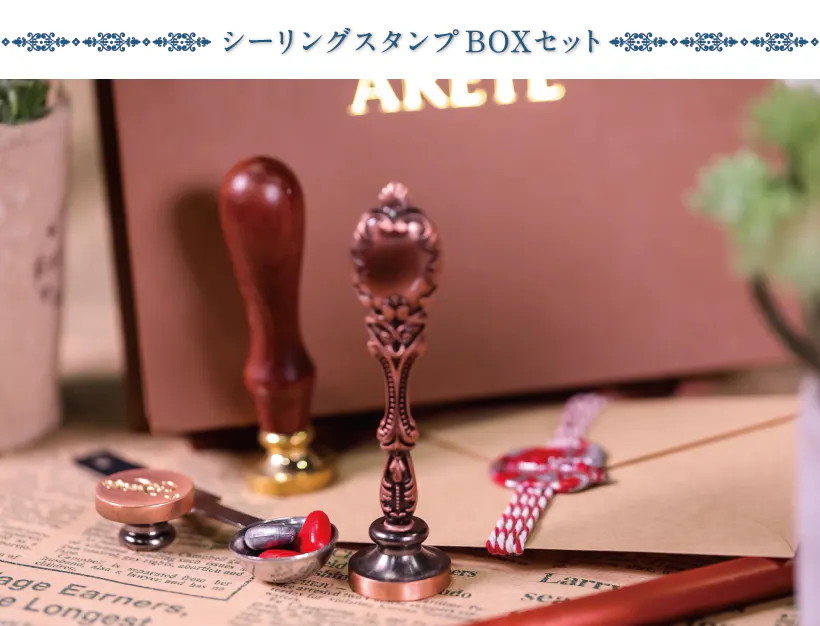 ①シーリングスタンプBOXセット(銅製ハンドル) + お好きなワックス1セット