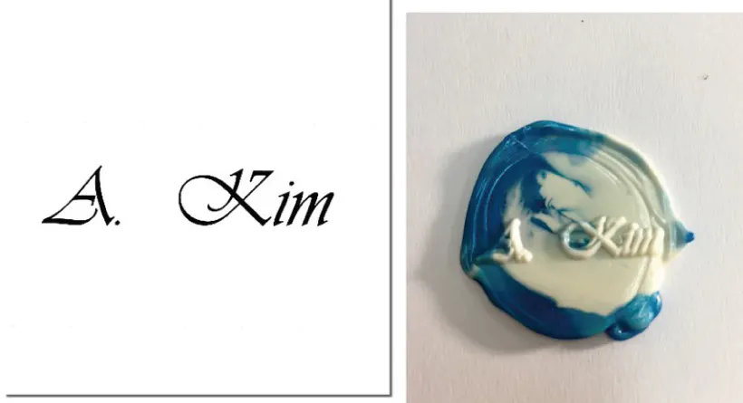 4)隣接する線・文字・デザインの間隔が狭いと、スタンプした時にワックスがつながってしまいますので、0.3mm以上間を空けていただくと、よりきれいに仕上がります。