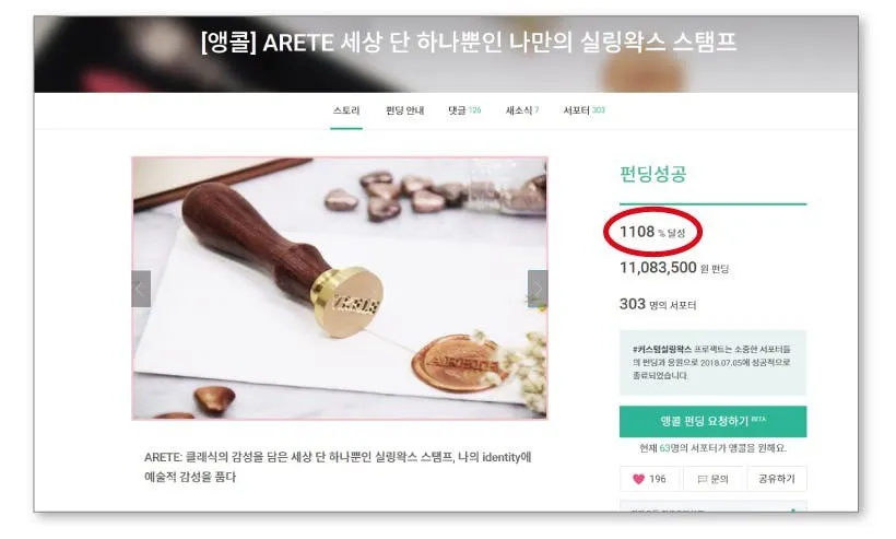 去る2018年4月、クラウドファンディングサイト『Wadiz』(ワディズ)に登場した『ARETE』のオーダーメイドのシーリングワックススタンプセットは、10日で目標金額の516%を達成するほどの人気を集めた。締め切り後も追加リクエストが殺到。去る8日には、アンコールファンディングを行った。