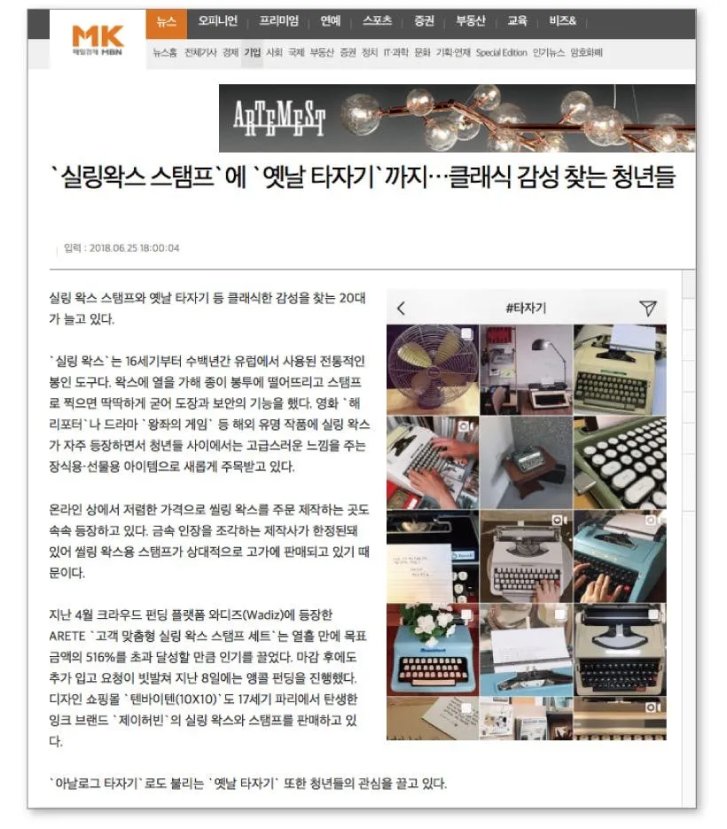 シーリングワックスや昔のタイプライターなど、クラシックなものを好む20代が増えている。