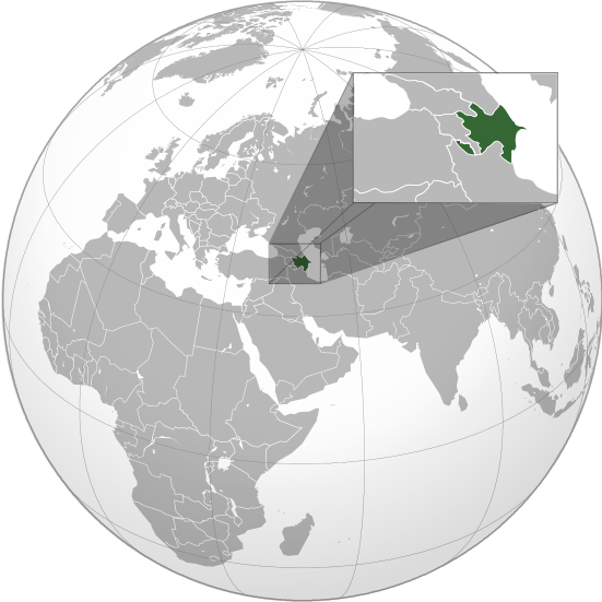 下記の世界地図の緑の部分がアゼルバイジャン共和国です。