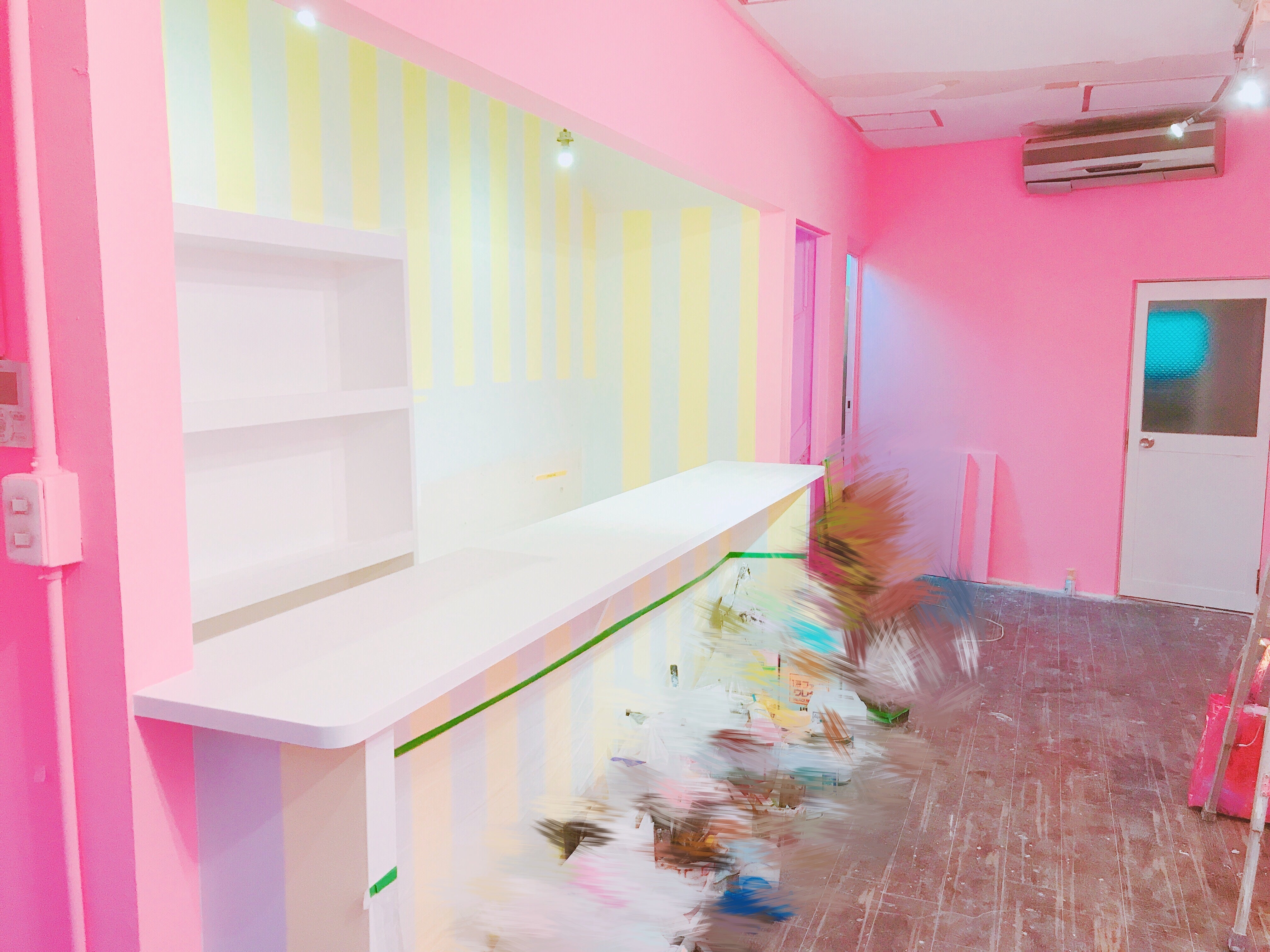 こんばんは、恋するみさきちゃんです。皆様にお店の内装の進行状況のご報告!壁が少しずつ出来てきて可愛くなってカウンターも出来ました!(╹◡╹)ピンクの壁に中がパステルイエローとホワイト!天井と床はまだこれからなのでお楽しみに〜っ!