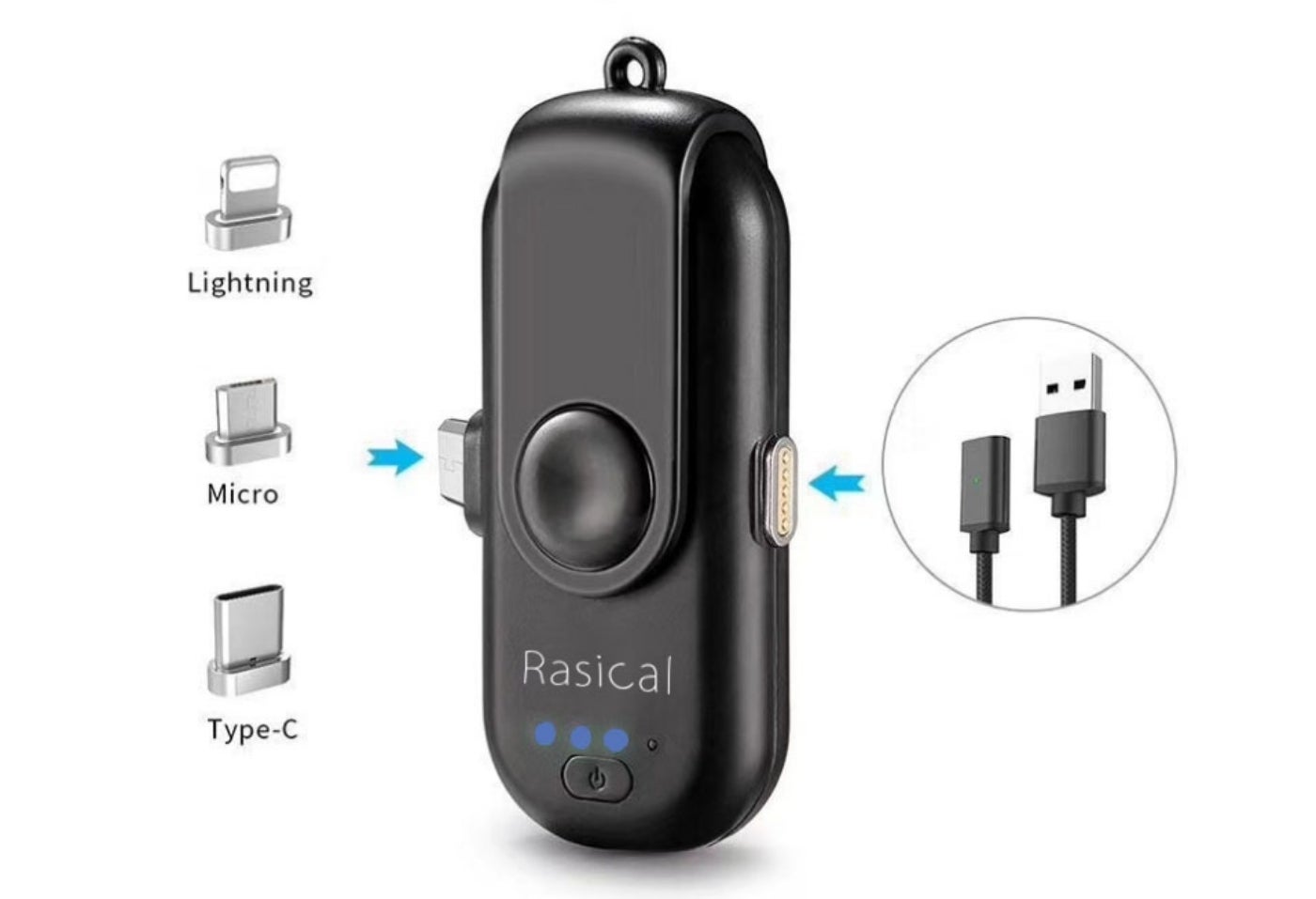また、リングカバーは360度移動可能になっているので、キーホルダーとして取り付けながらでも、角度を変えて充電が可能です。
