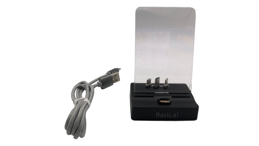 外では小型充電器として使用でき、そのまま家でもケーブルレスで使えるように、マグネットタイプのスタンドもご用意しました。