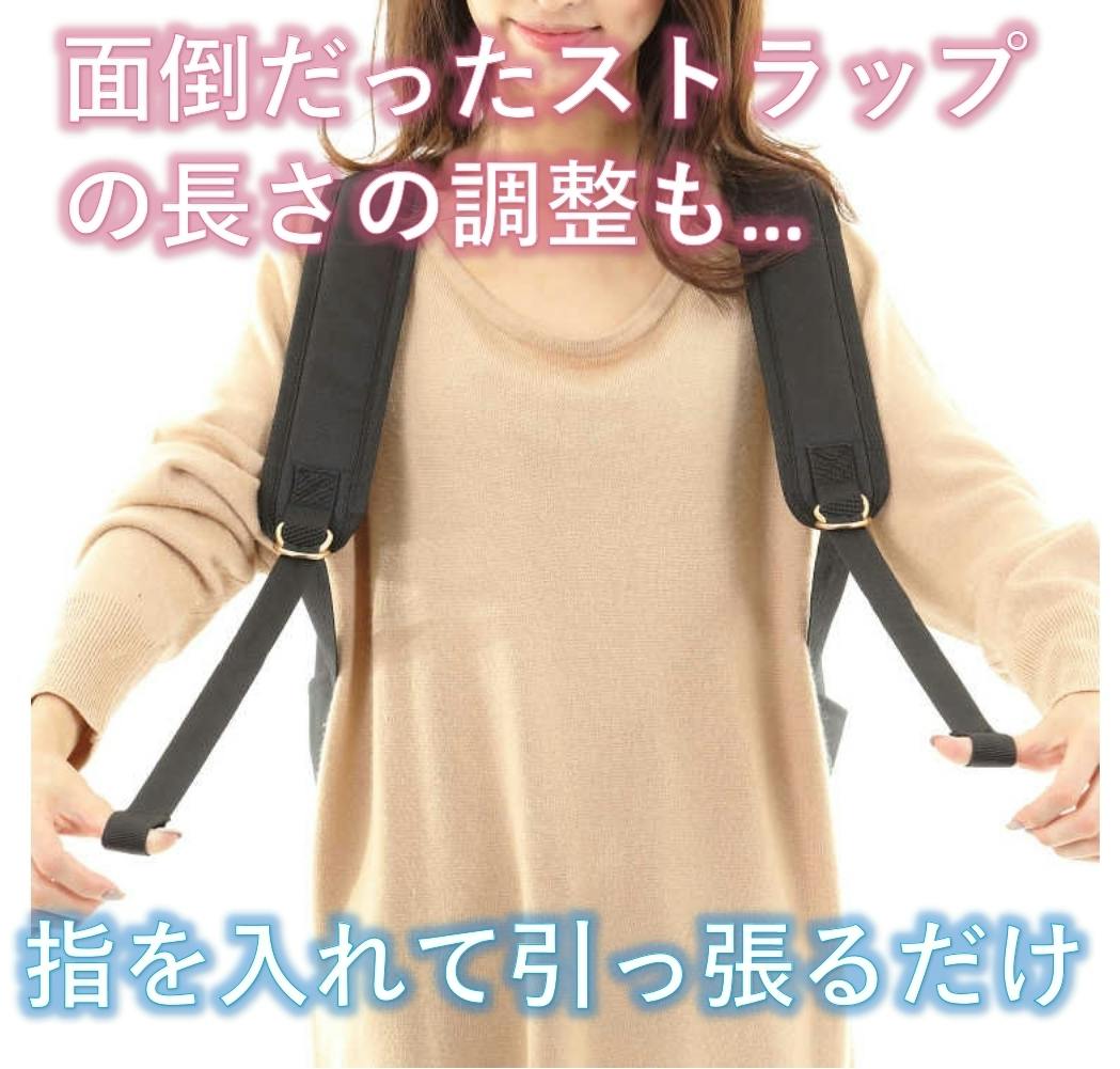 お悩みの声「なで肩なので、リュックがずり落ちるのが不満」➔ずり落ち防止の仕組みを追加しました。