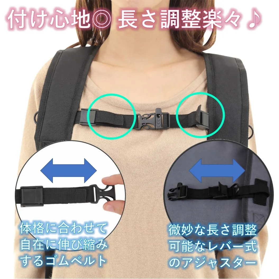 そもそも胸ベルトは、両肩にだけ重さの負担が掛かるのを分散するためのグッズです。
