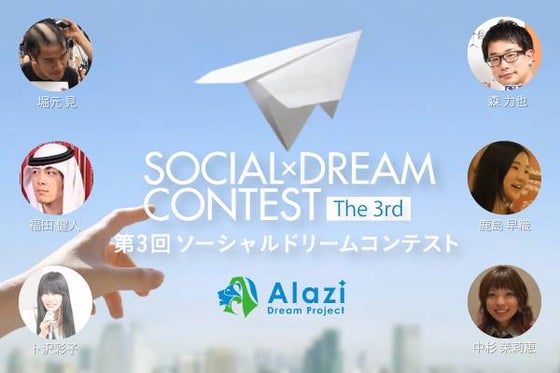 主催団体:Alazi Dream Projectは、夢追うすべての人がもっと輝き応援しあえる社会の実現を目指し、主に「社会を変える」をテーマに活躍する今を輝く若者が登壇するコンテストを開催いたします。参加者全員が審査員となる参加型イベントとし、審査員は3枚のハートを応援したいと思う登壇者に投票します。優勝者にはその後の夢を後押しする著書を贈呈します。誰もが誰かの夢を応援しあえる社会の実現、夢追うすべての人が輝き、繋がり、協力しあう。。。ソーシャルドリームコンテストは、そんな次世代のコミュニティ型コンテストです!!