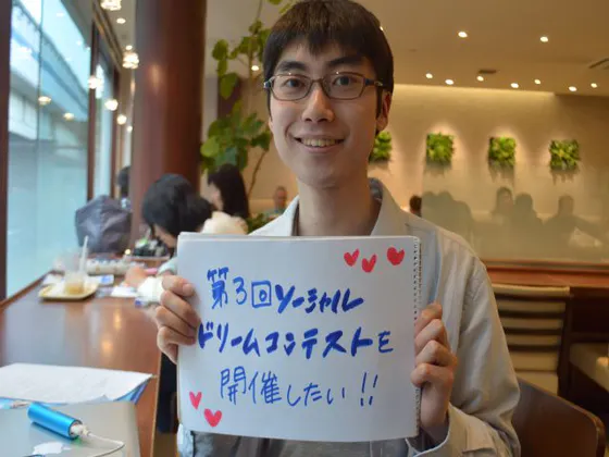 仲良くなってから、私にはソーシャルドリームコンテストの100人の舞台で、まず初めに舞台に立って、緊張しながらもしっかりと運営を担い、開会の挨拶をはじめる彼の姿がよく浮かんでいました。