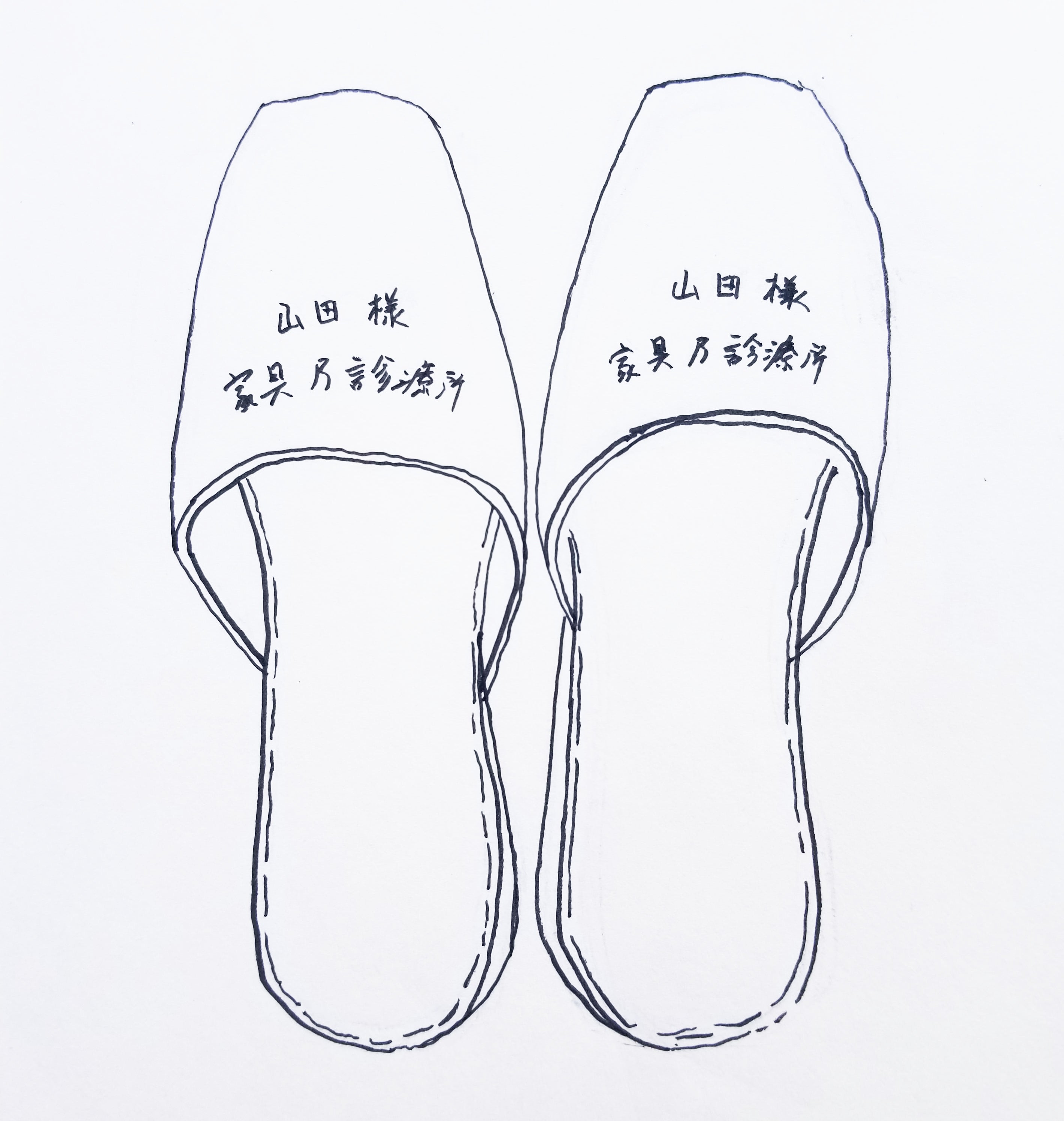 スリッパのイメージは、地元・埼玉県の「ほねつぎ」という診療所で使われていたスリッパが理想です(笑)。