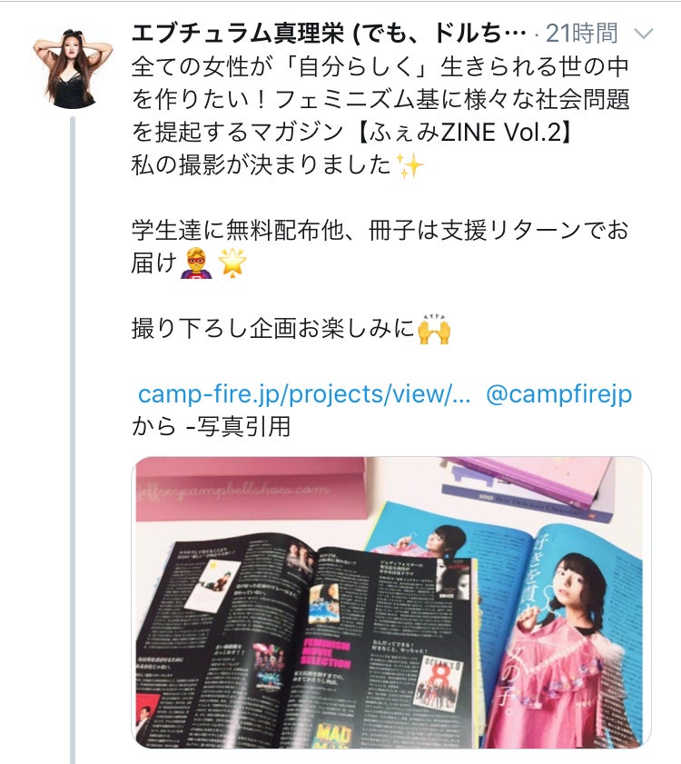残念ながらお二人の日程が合わず、石川優実さんとのコラボが実現しませんでしたが…ふぇみZINEオリジナルTシャツも素敵に着こなしていただけました!